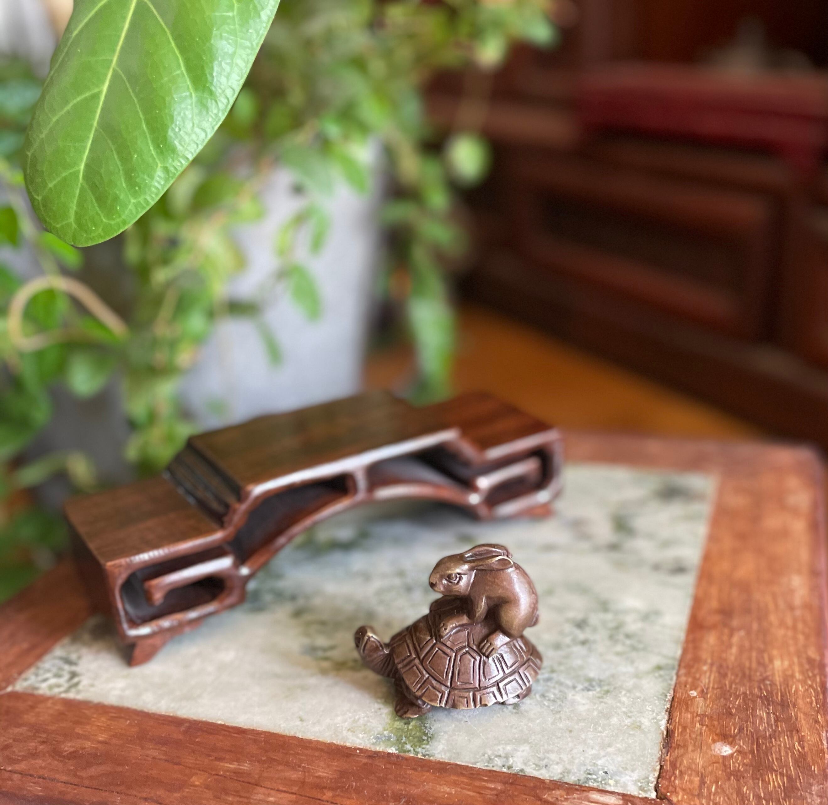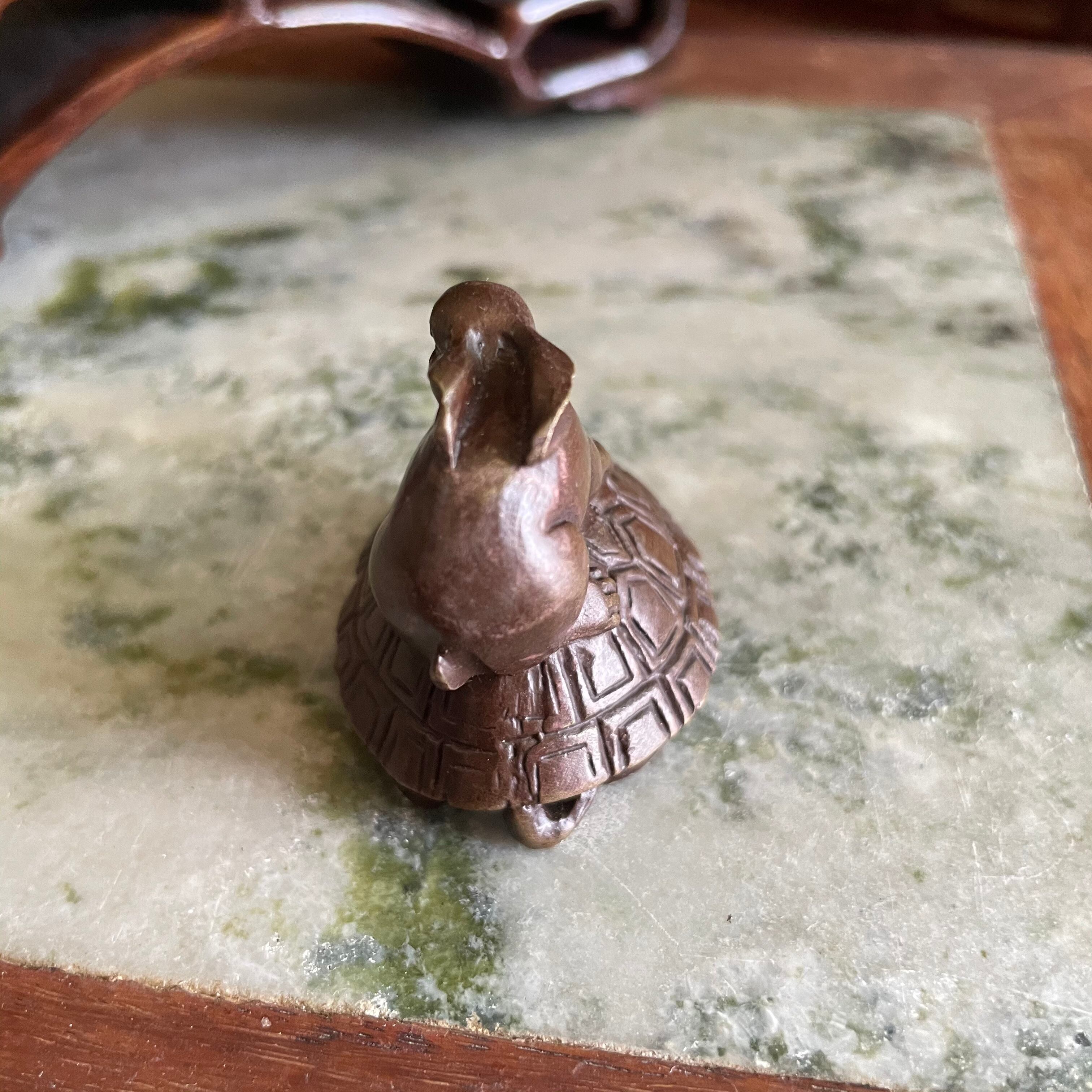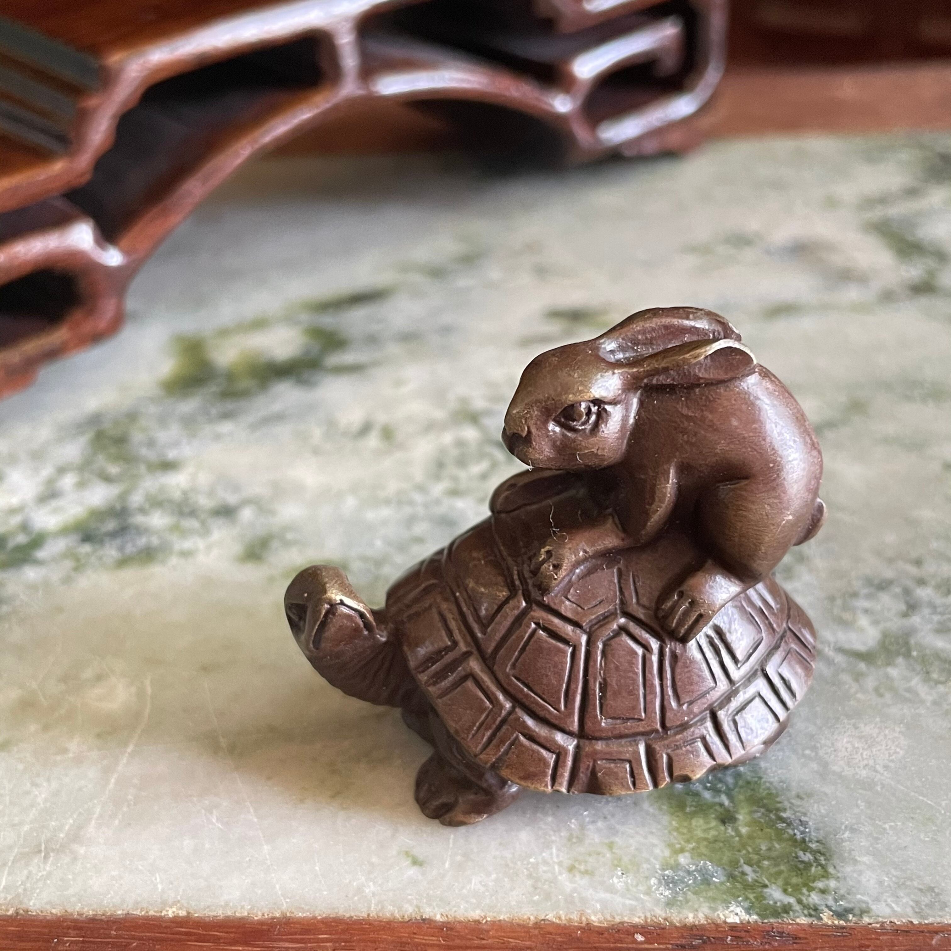 カメの上にうさぎが乗って何やら話しかけていますね!