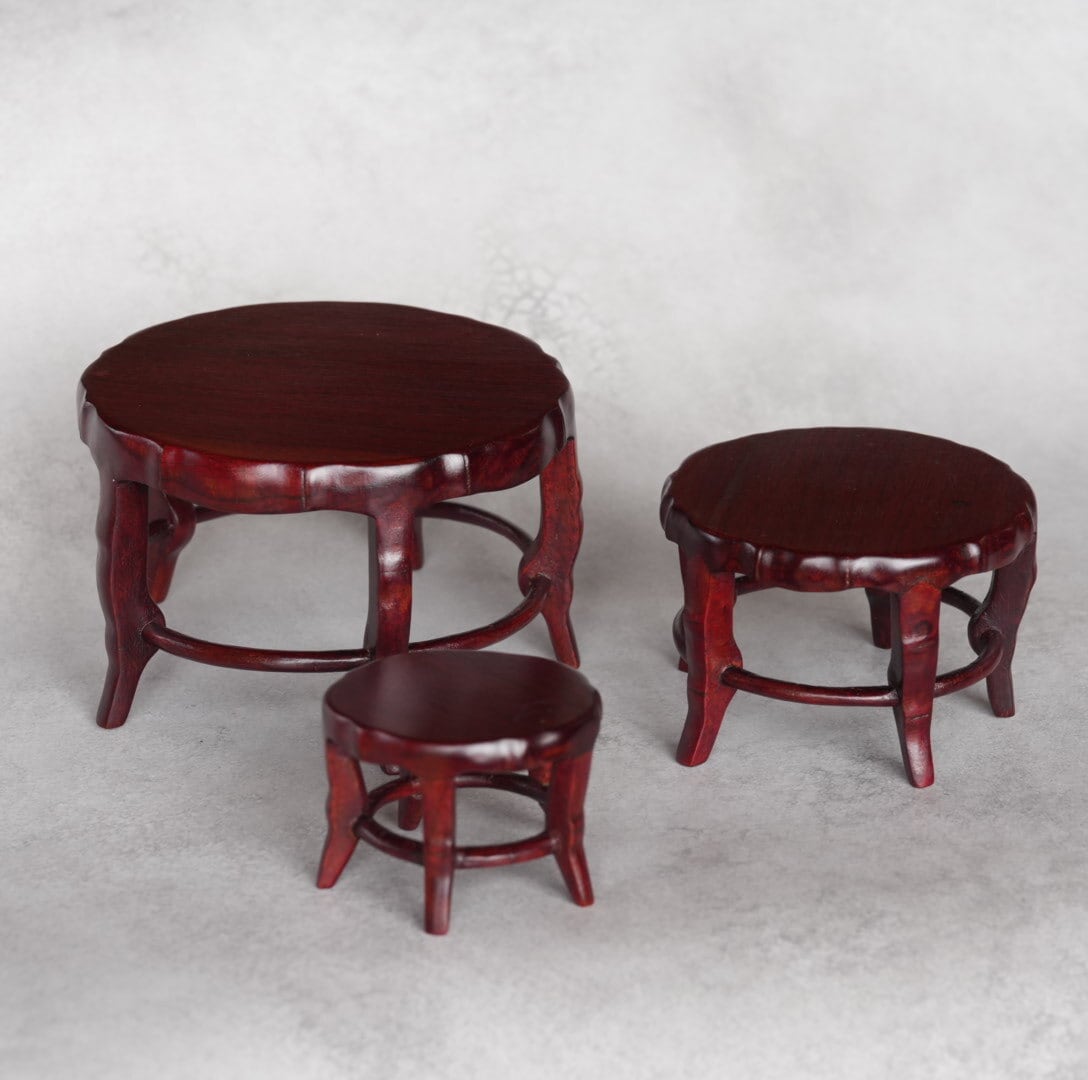 再入荷【シノワズリ】丸い飾り台 木製 中
