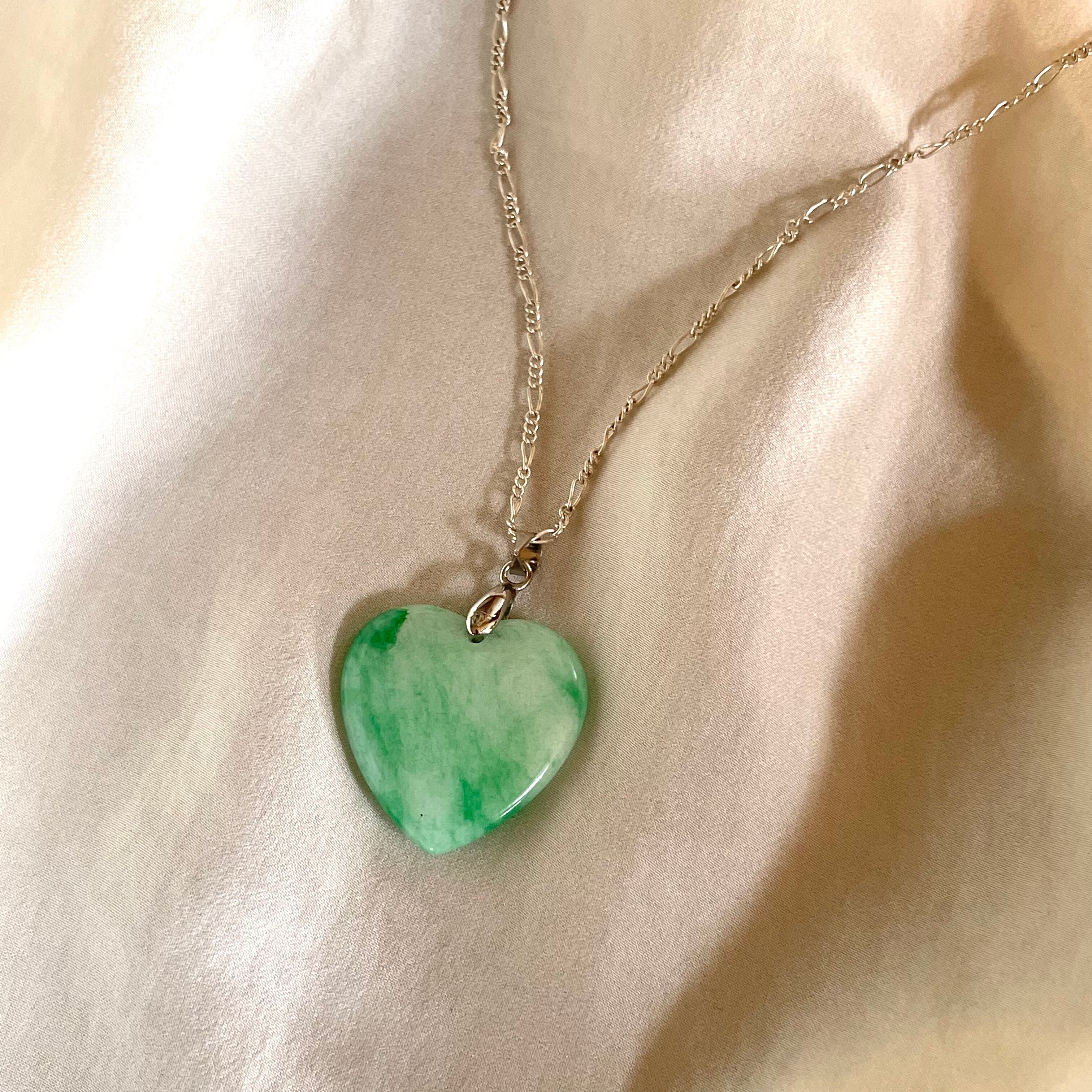 翡翠ペンダントトップ ハート形 大 明るい緑色
