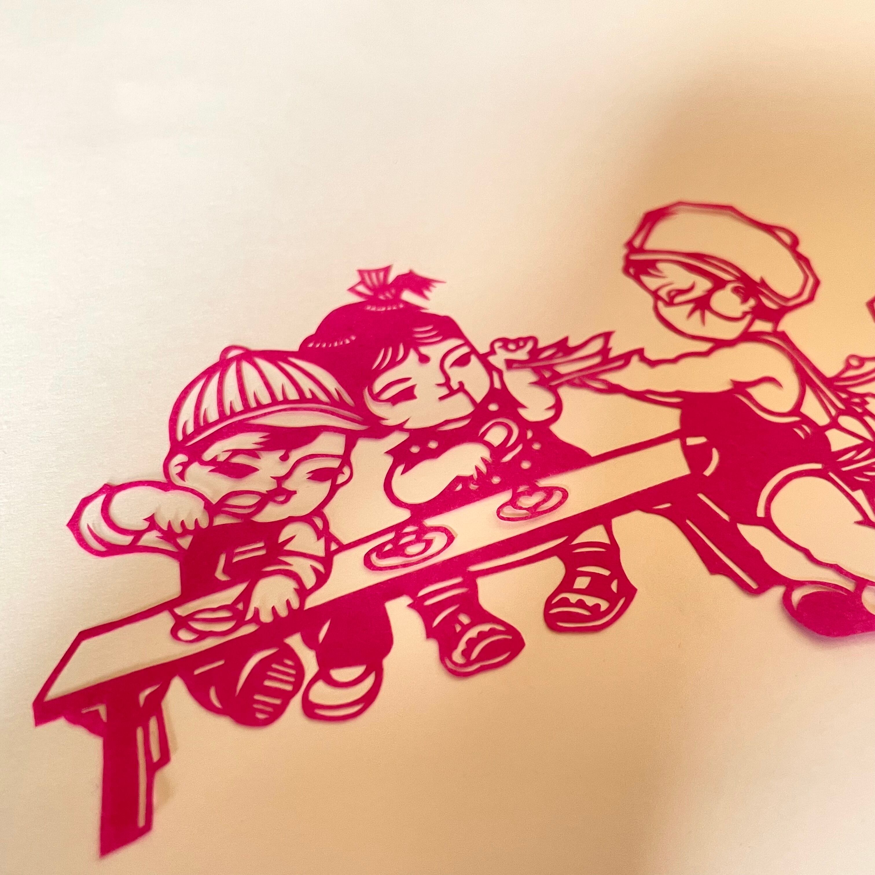 【職人さんの切絵】無邪気に遊ぶ子どもたち ⑤