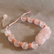 紐で編まれたローズクォーツのブレスレットです。