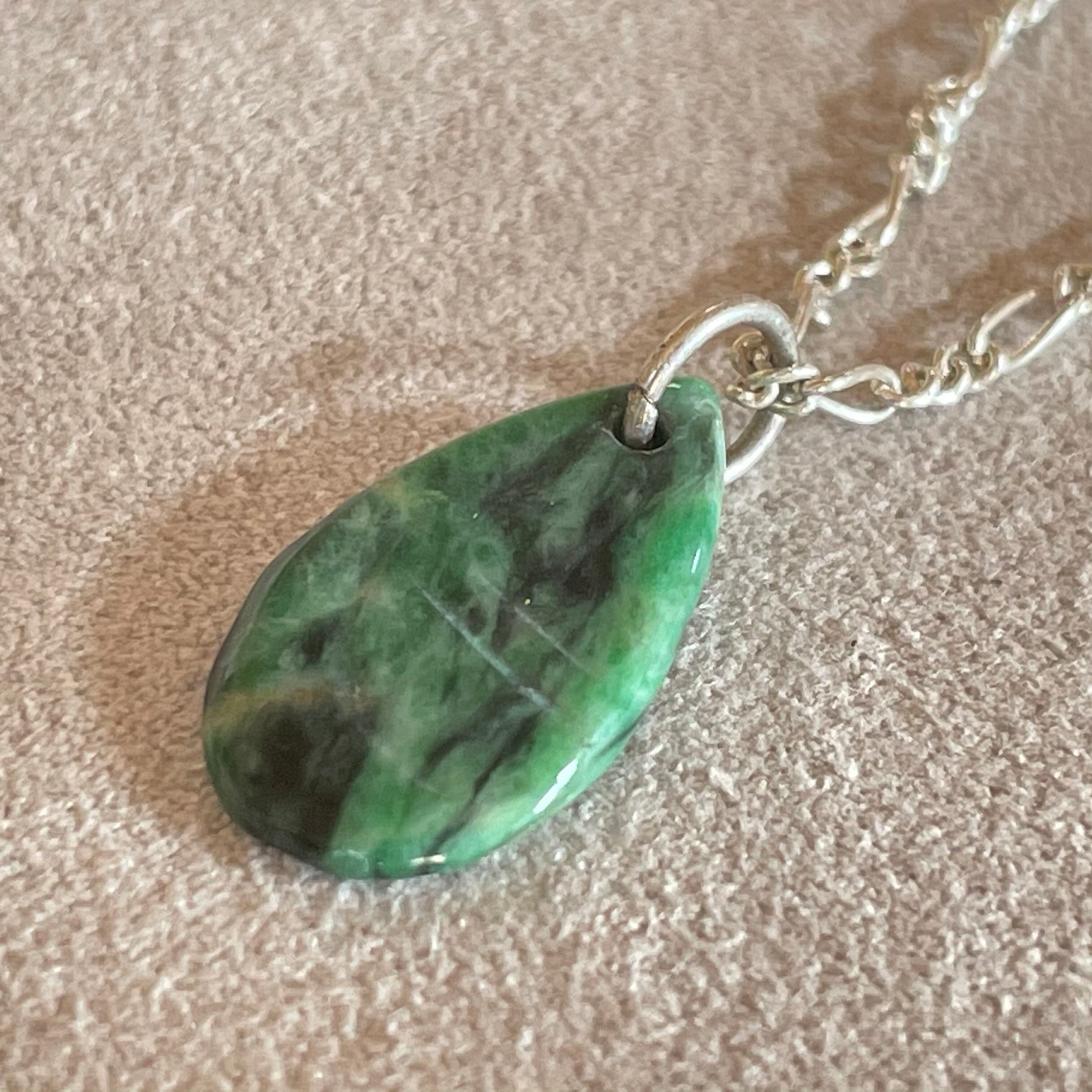 こちらは全体的に深い緑色です。天然石ならではのマーブル状の緑色が素敵です。