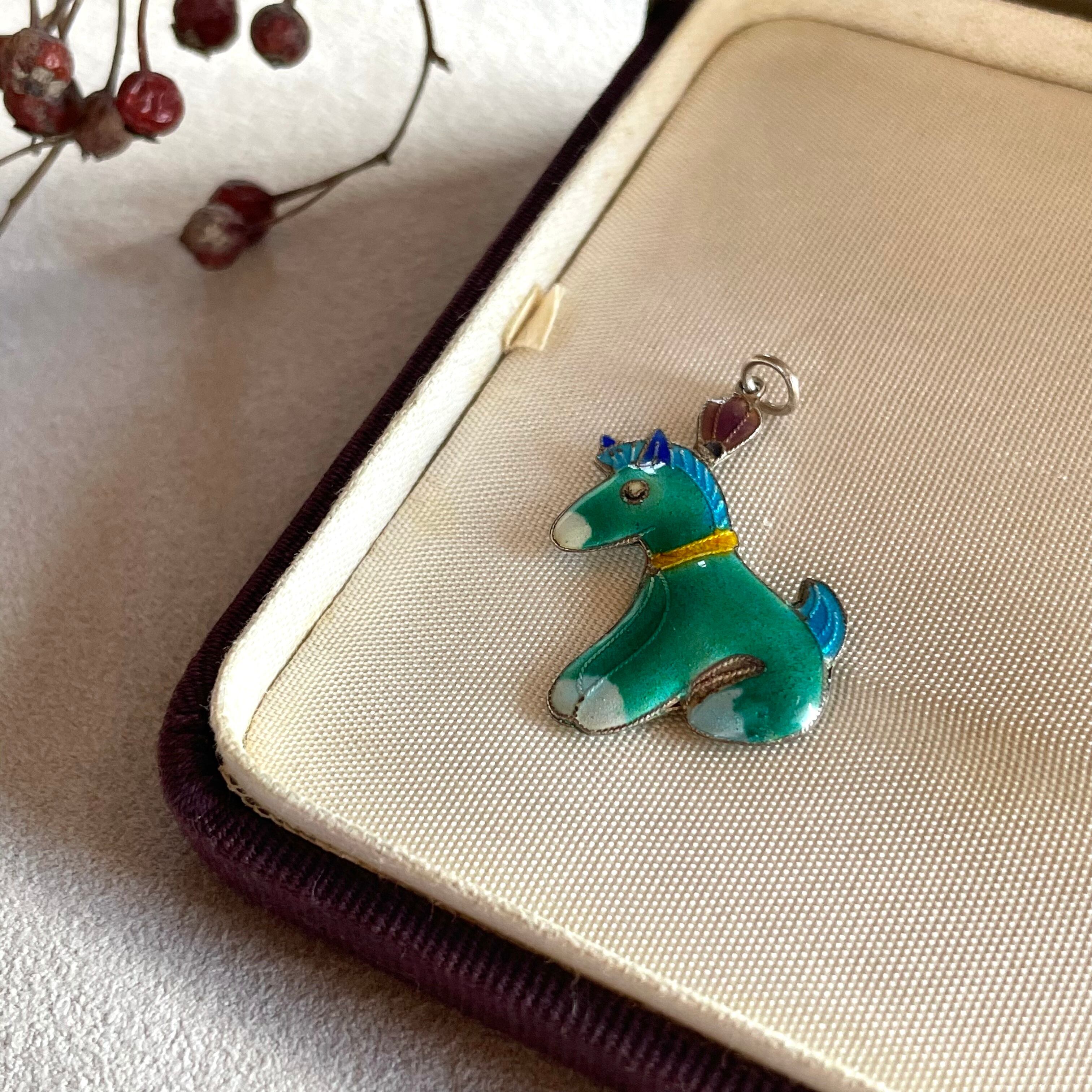 色鮮やかな緑色の仔馬のペンダントトップ、