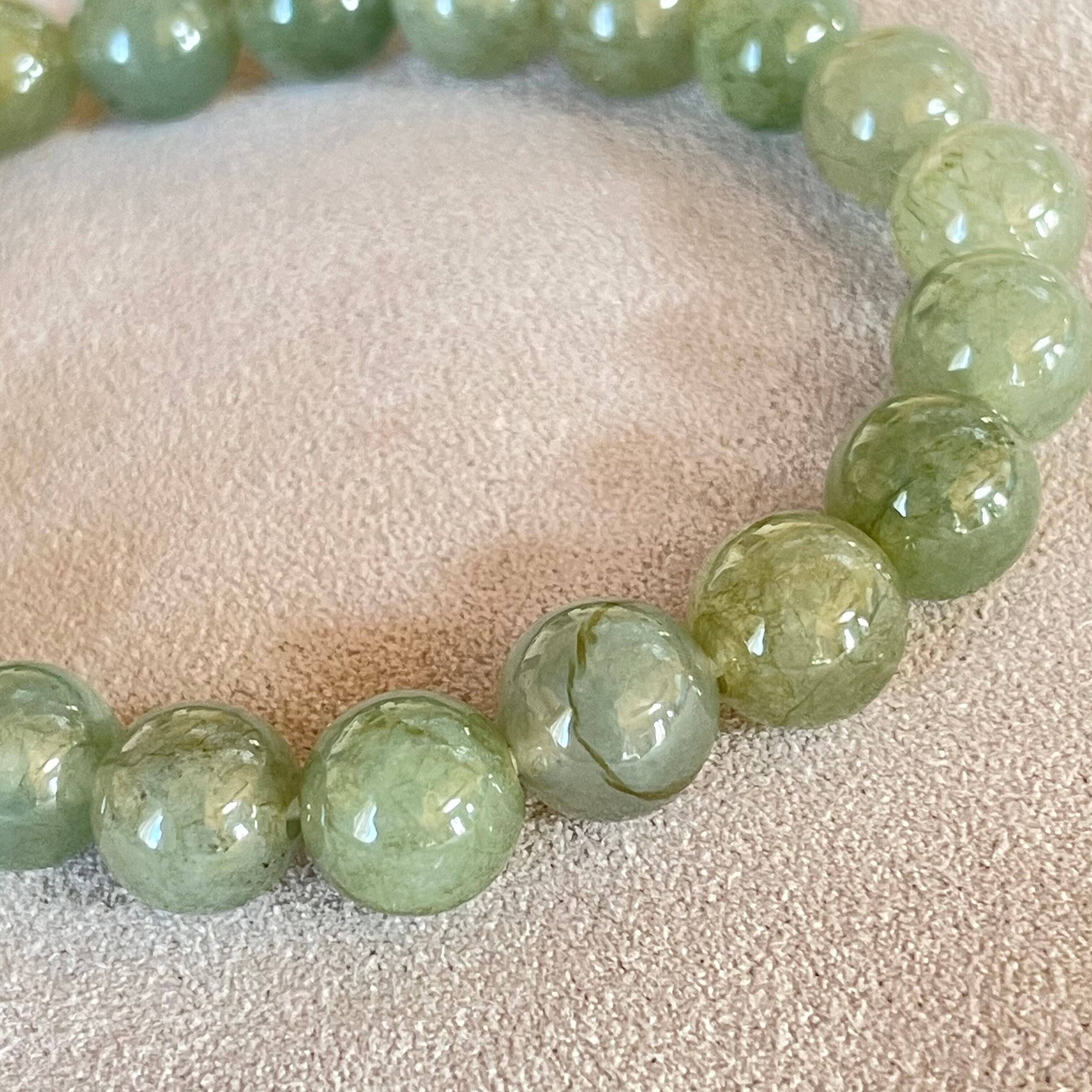 翡翠/水晶に龍彫刻入り ブレスレット 深い緑色