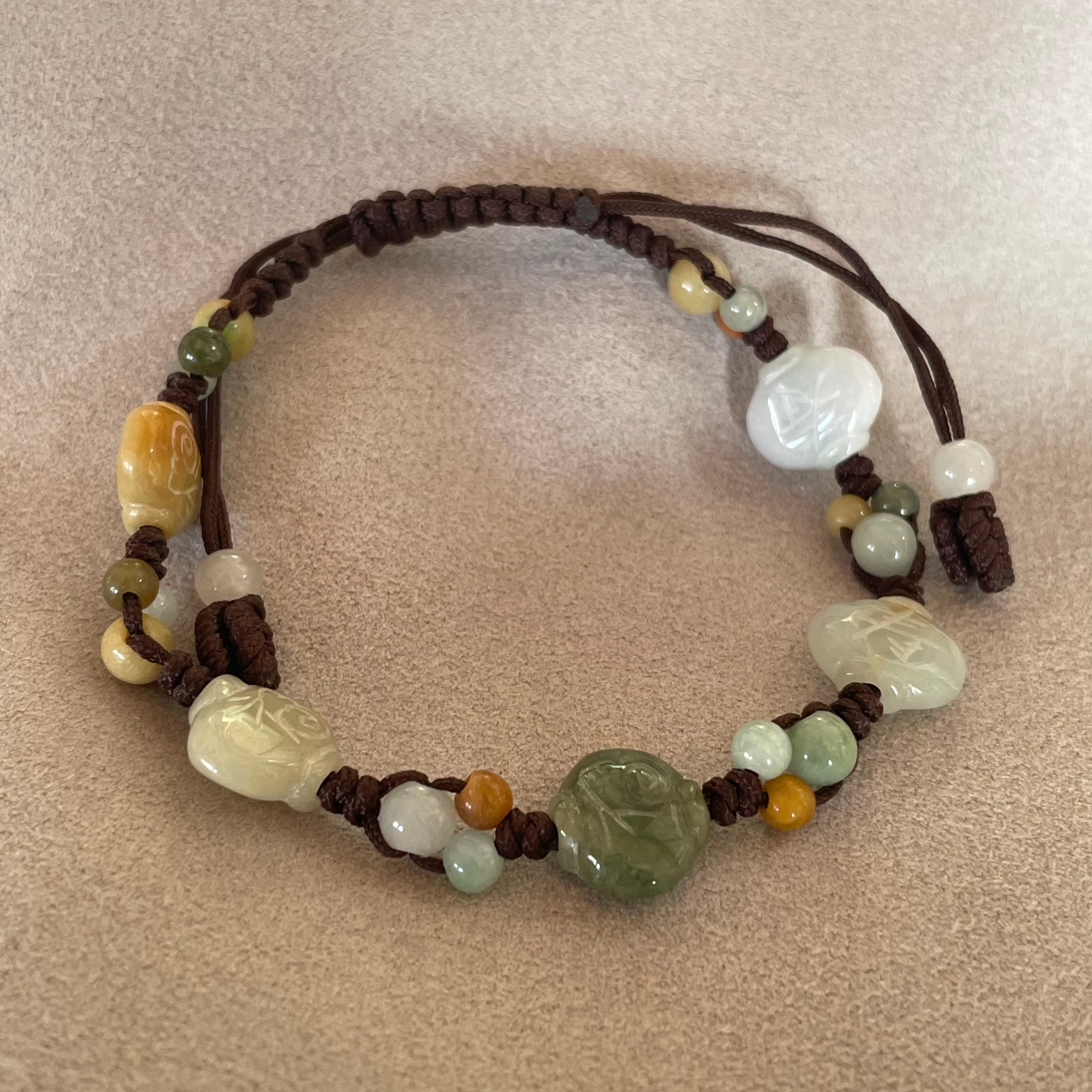 可愛らしい壺のような形の翡翠と丸い翡翠を組み合わせて編まれたブレスレット、こちらは30年程前のデットストックです。
