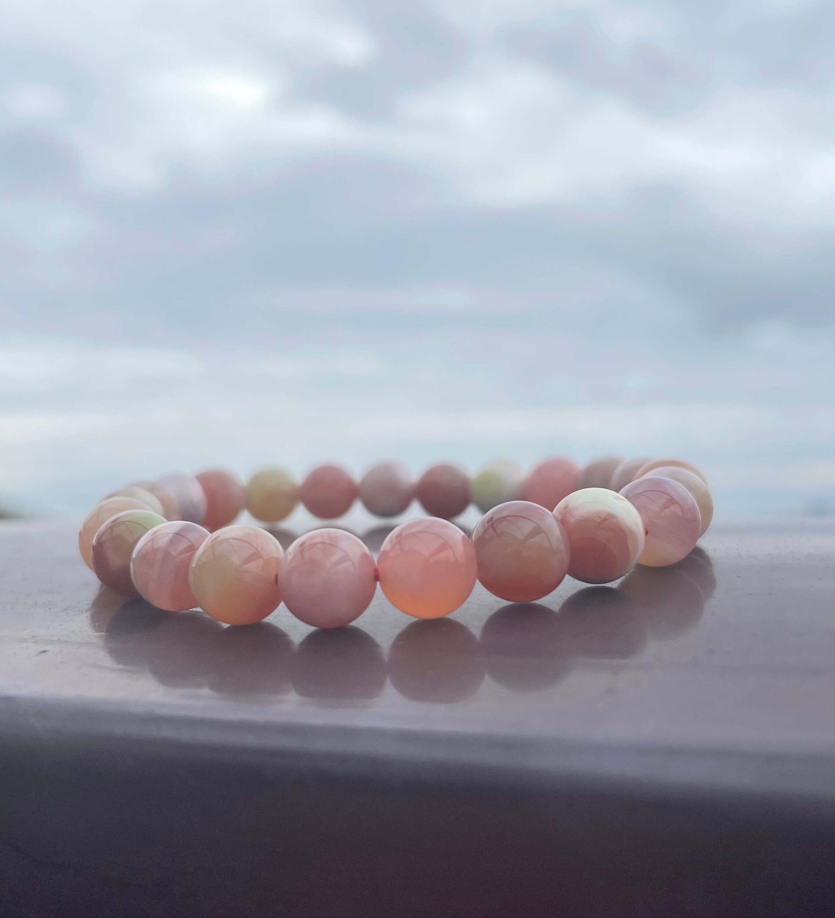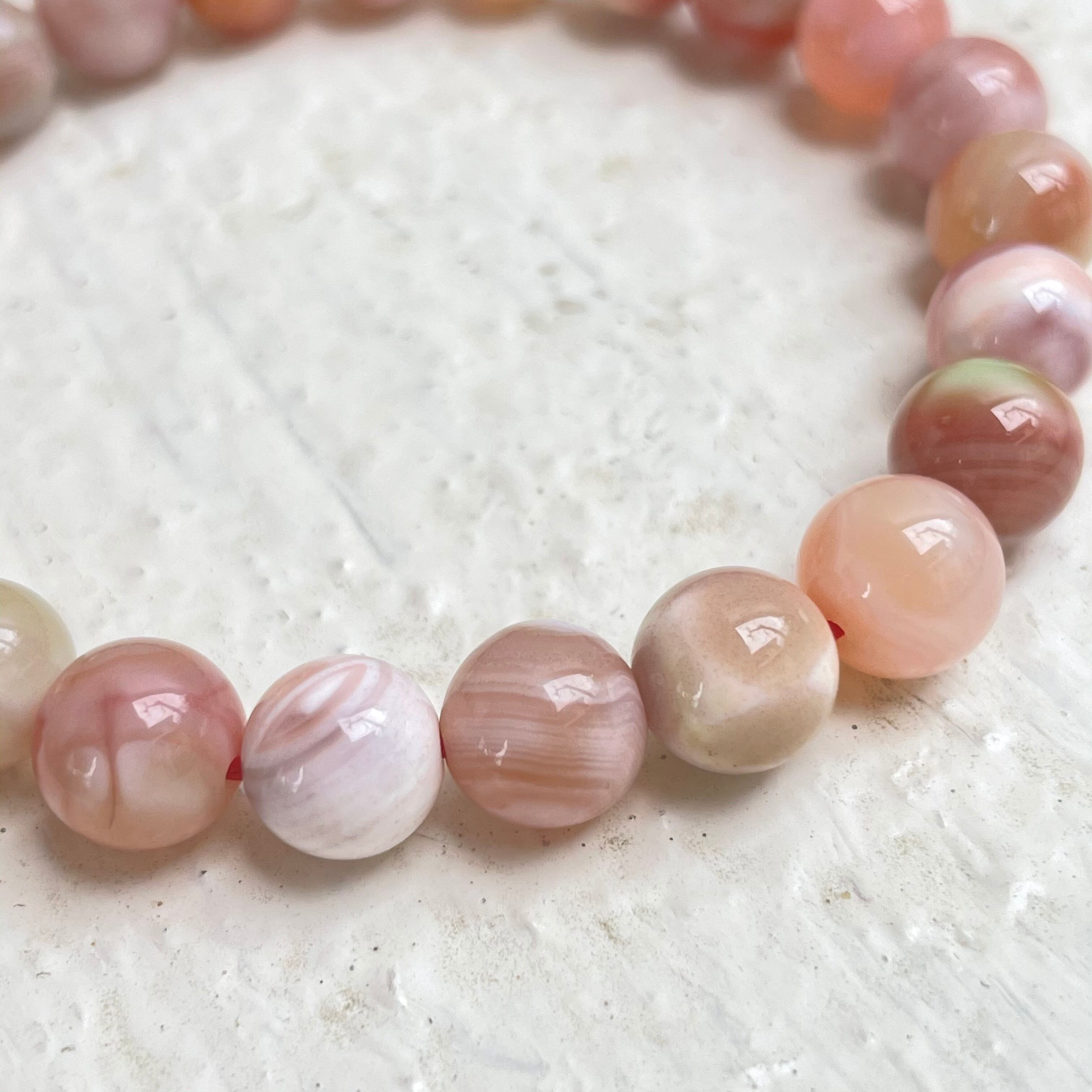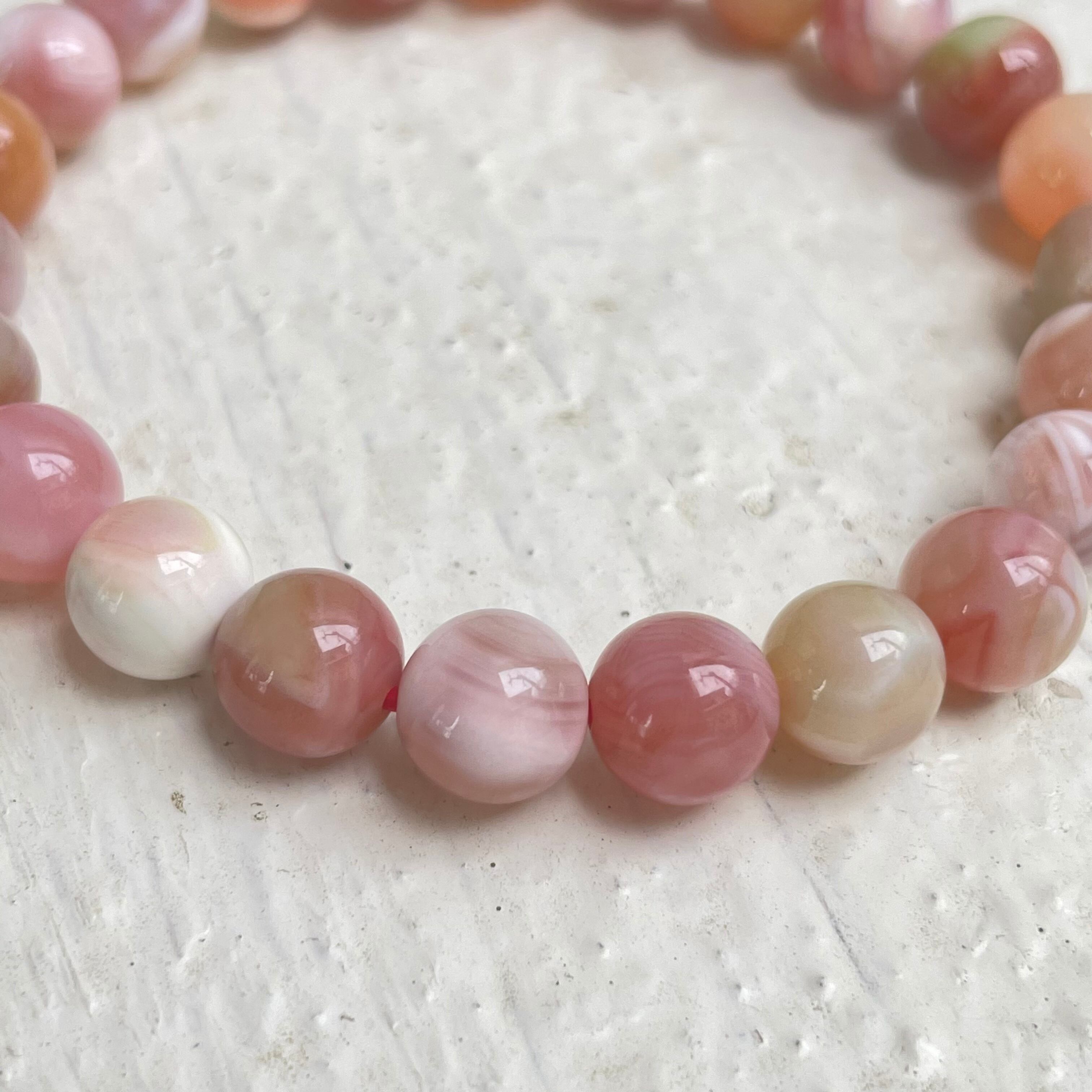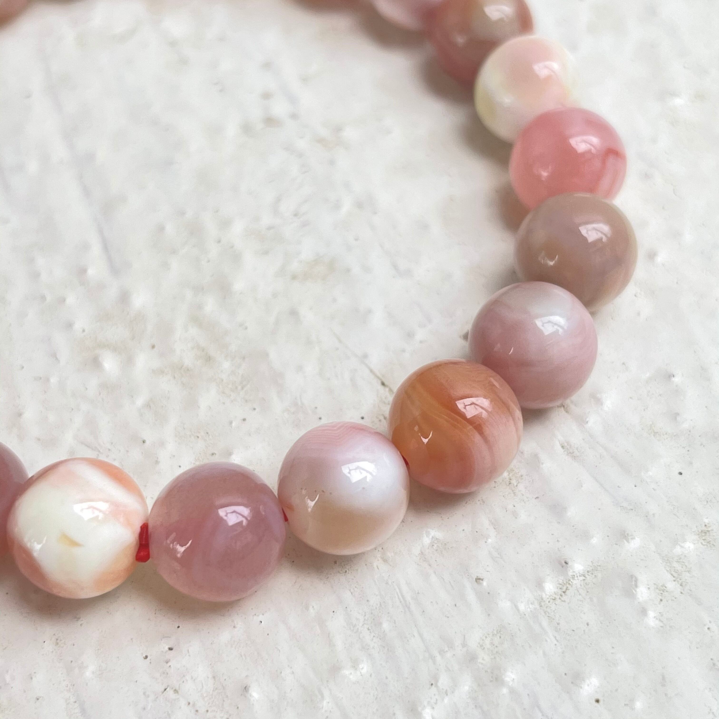 落ち着いたローズカラーにピンクマーブルカラー、とても可愛い天然石ブレスレットです!