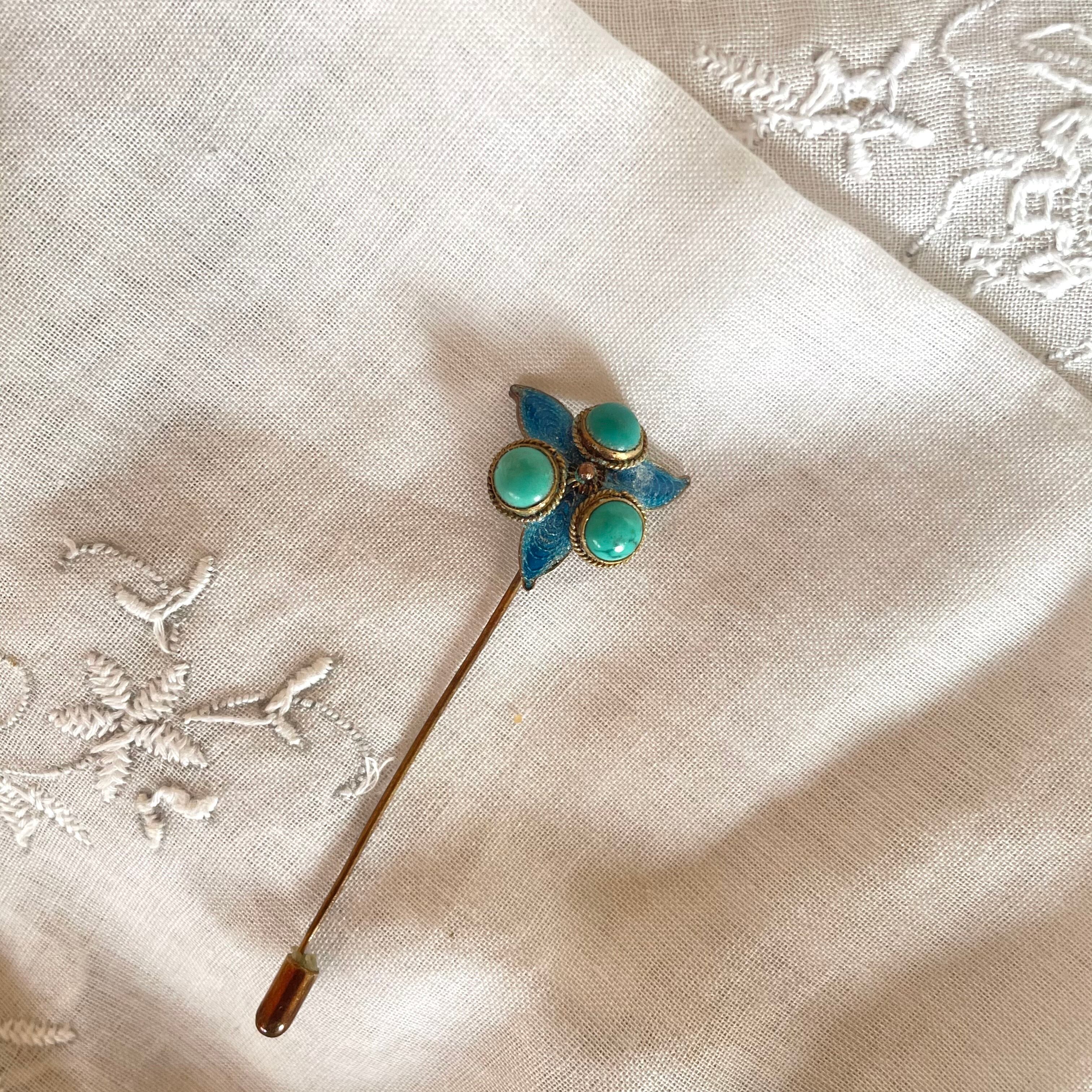 【アンティーク】ターコイズと七宝焼 ピンブローチ