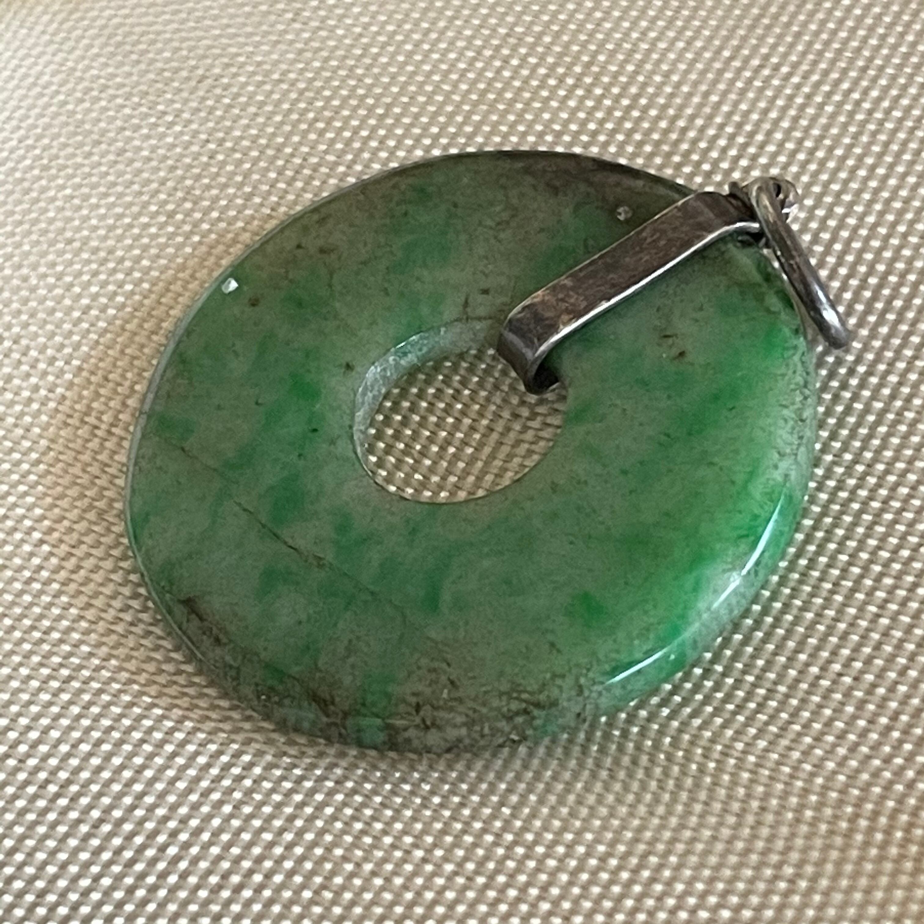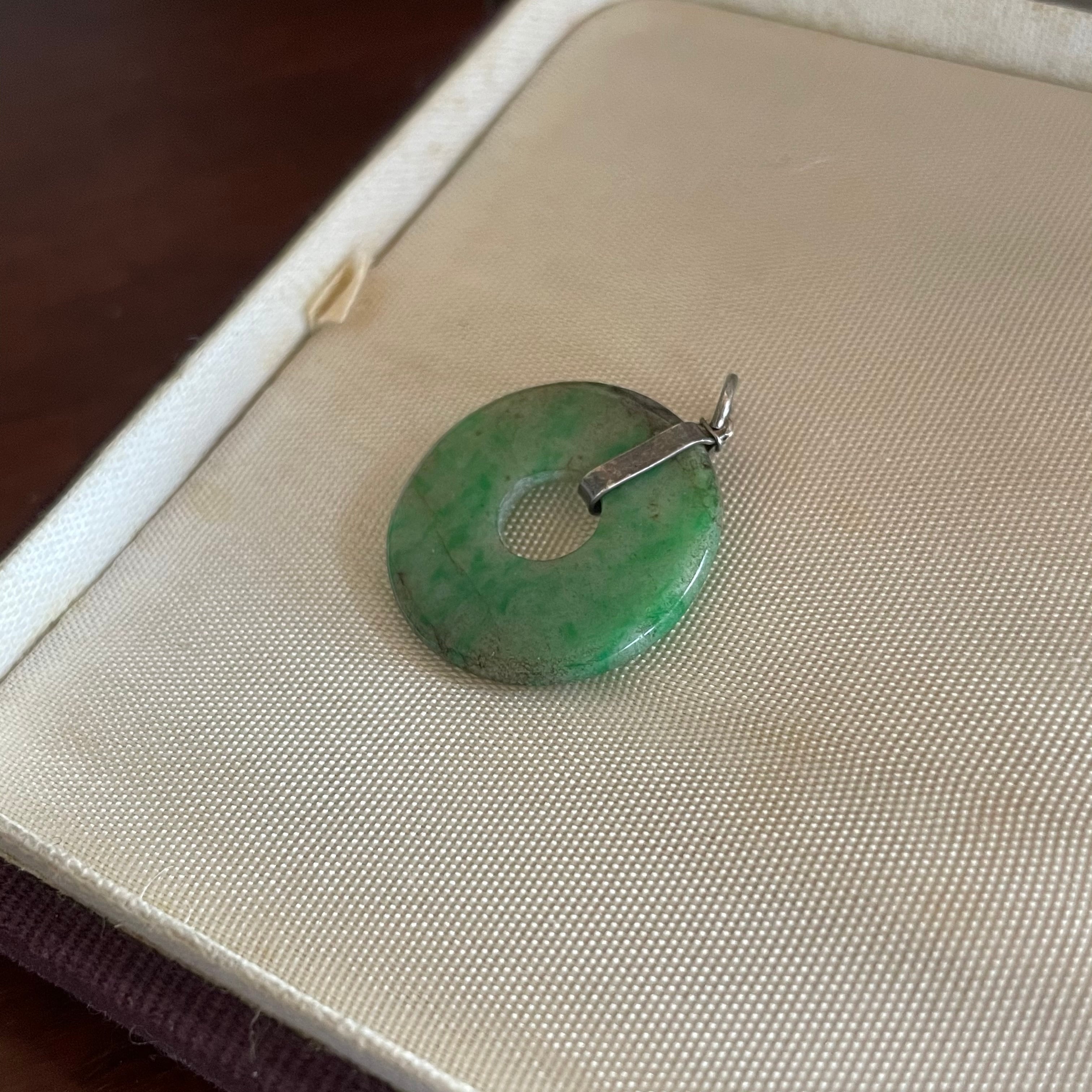 アンティーク翡翠 ペンダントトップ 丸形 深い緑色