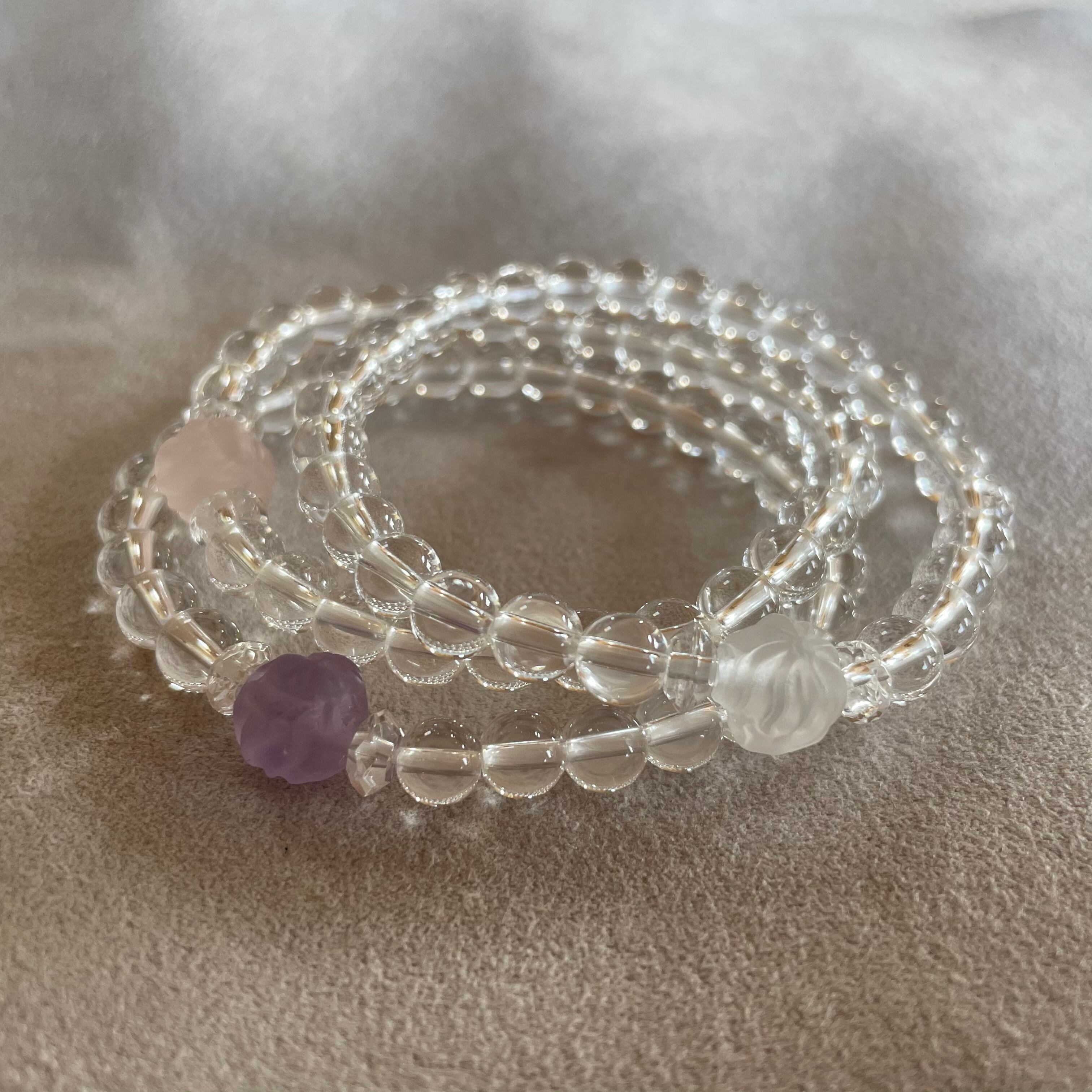 クォーツ(水晶)にローズクォーツを組み合わせたブレスレット。