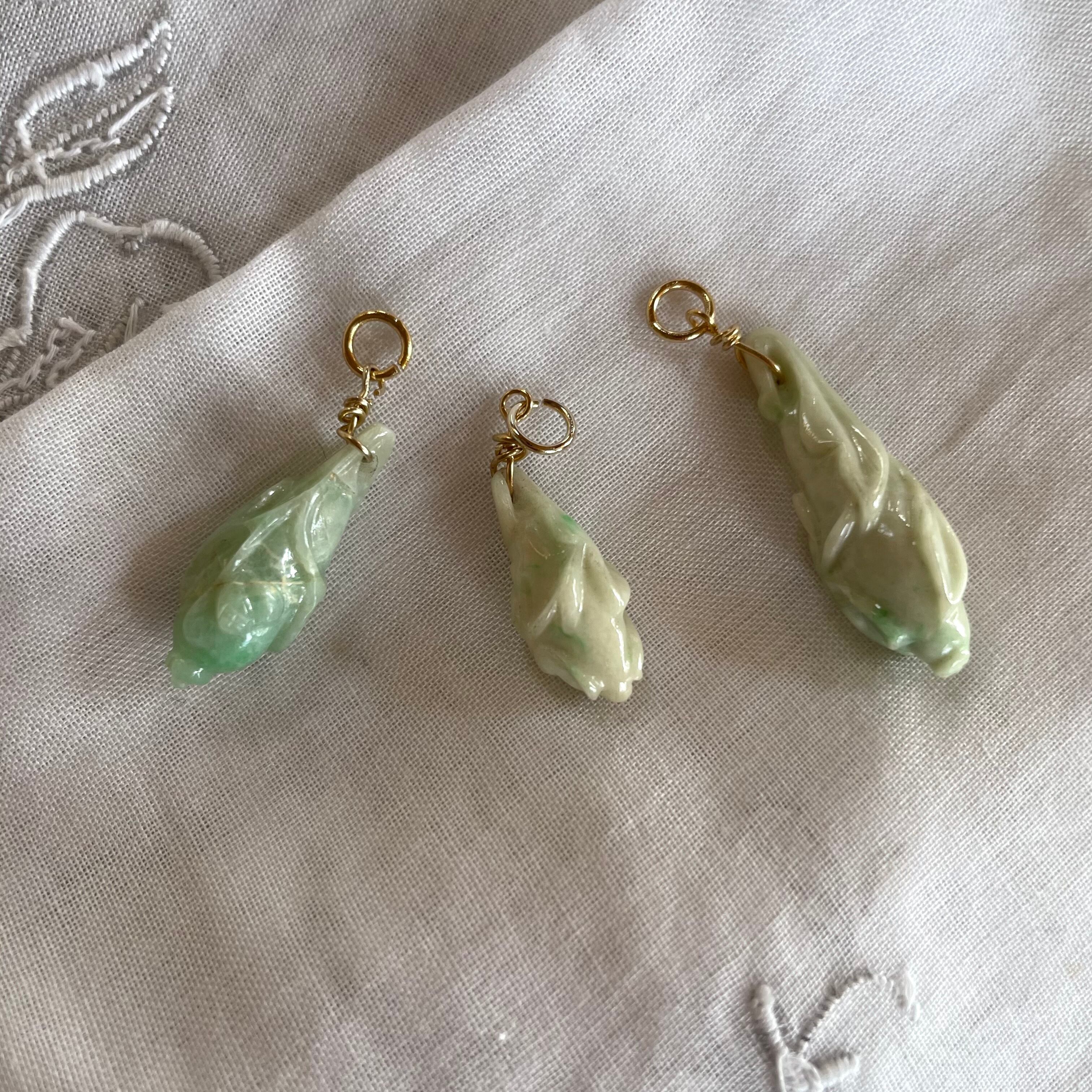 アンティーク翡翠 ペンダントトップ 花模様 小