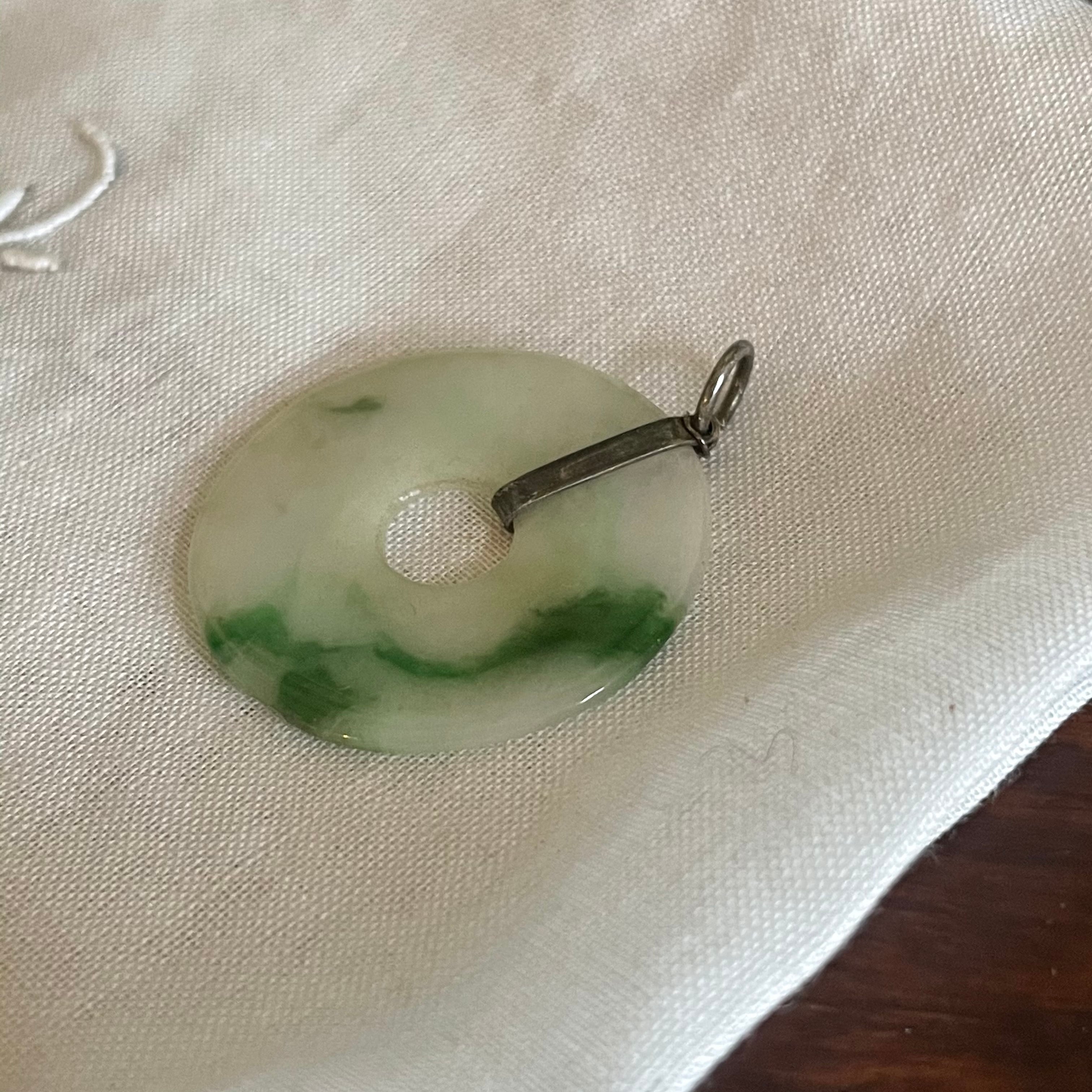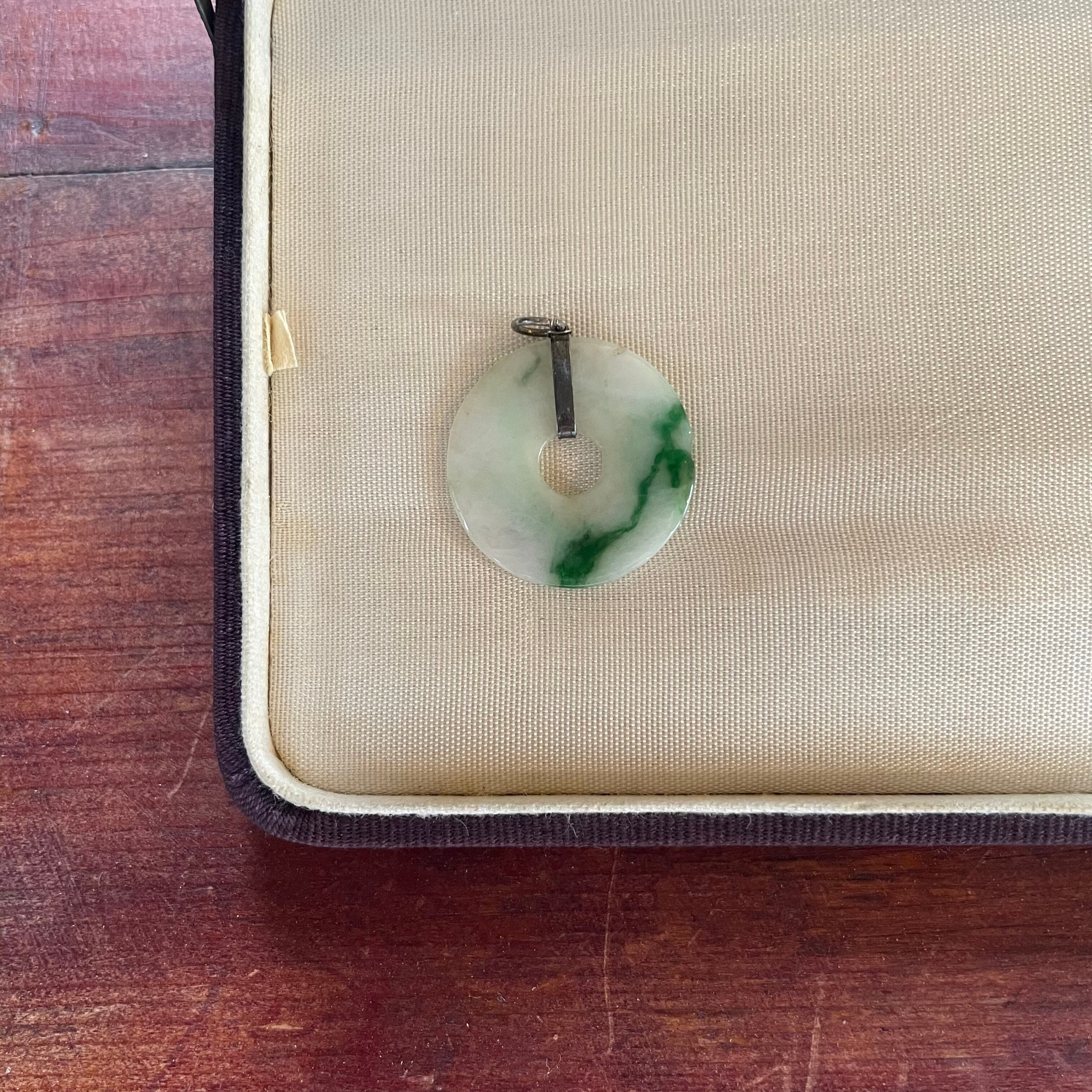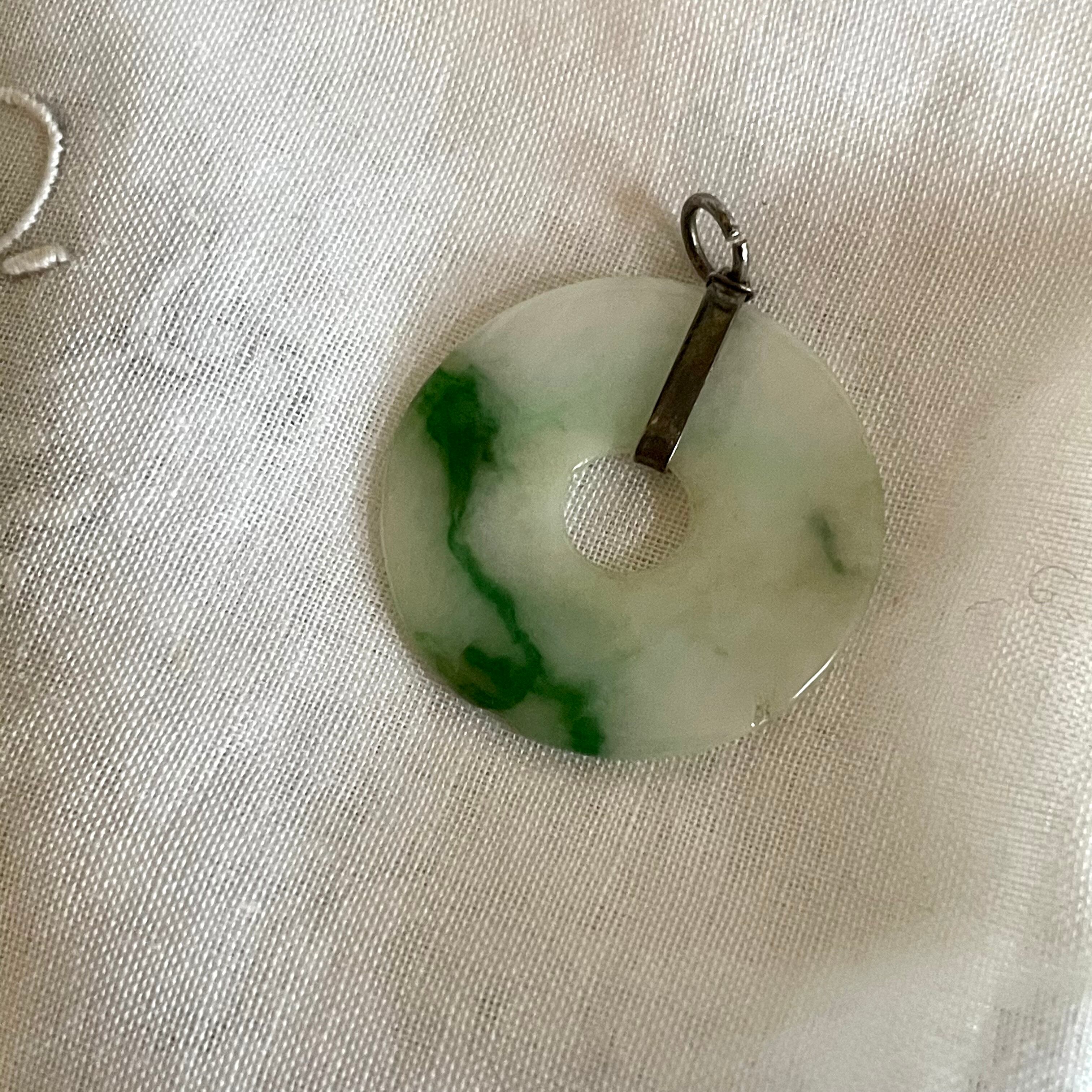 【アンティーク】深い緑色のアクセント 翡翠ペンダントトップ 丸形