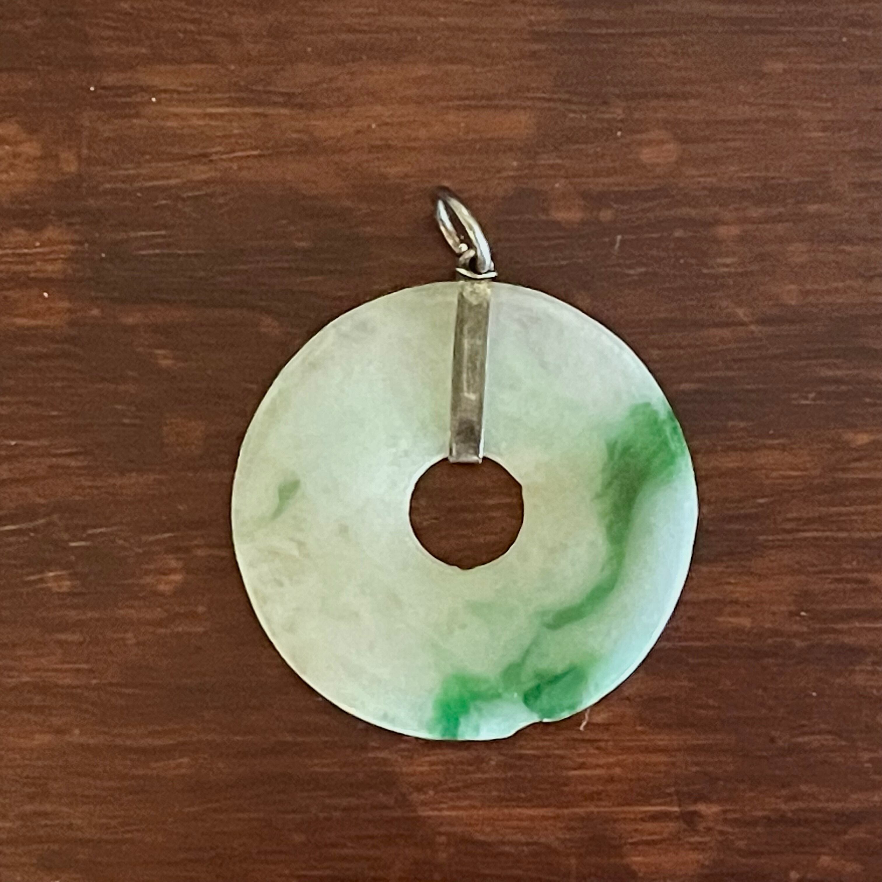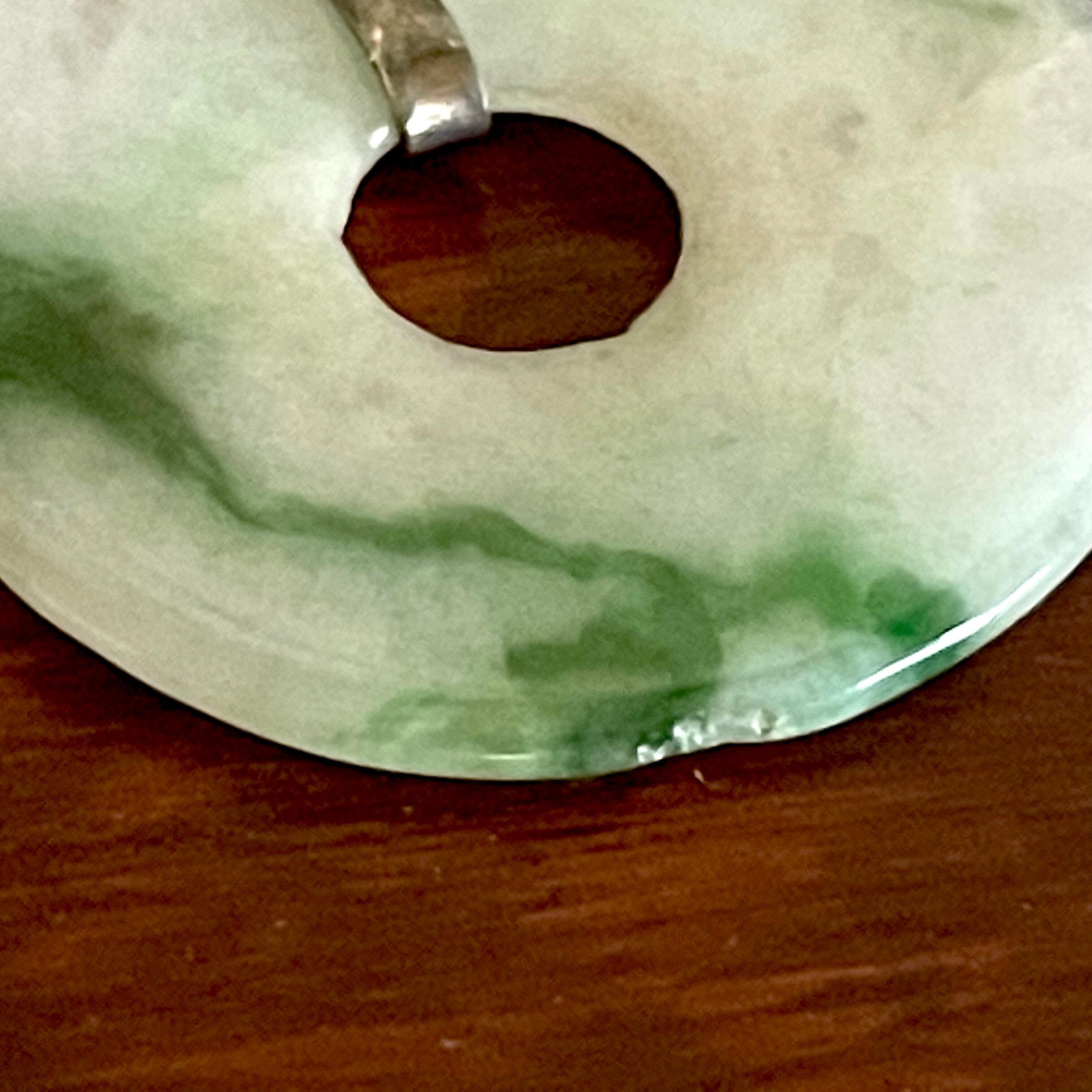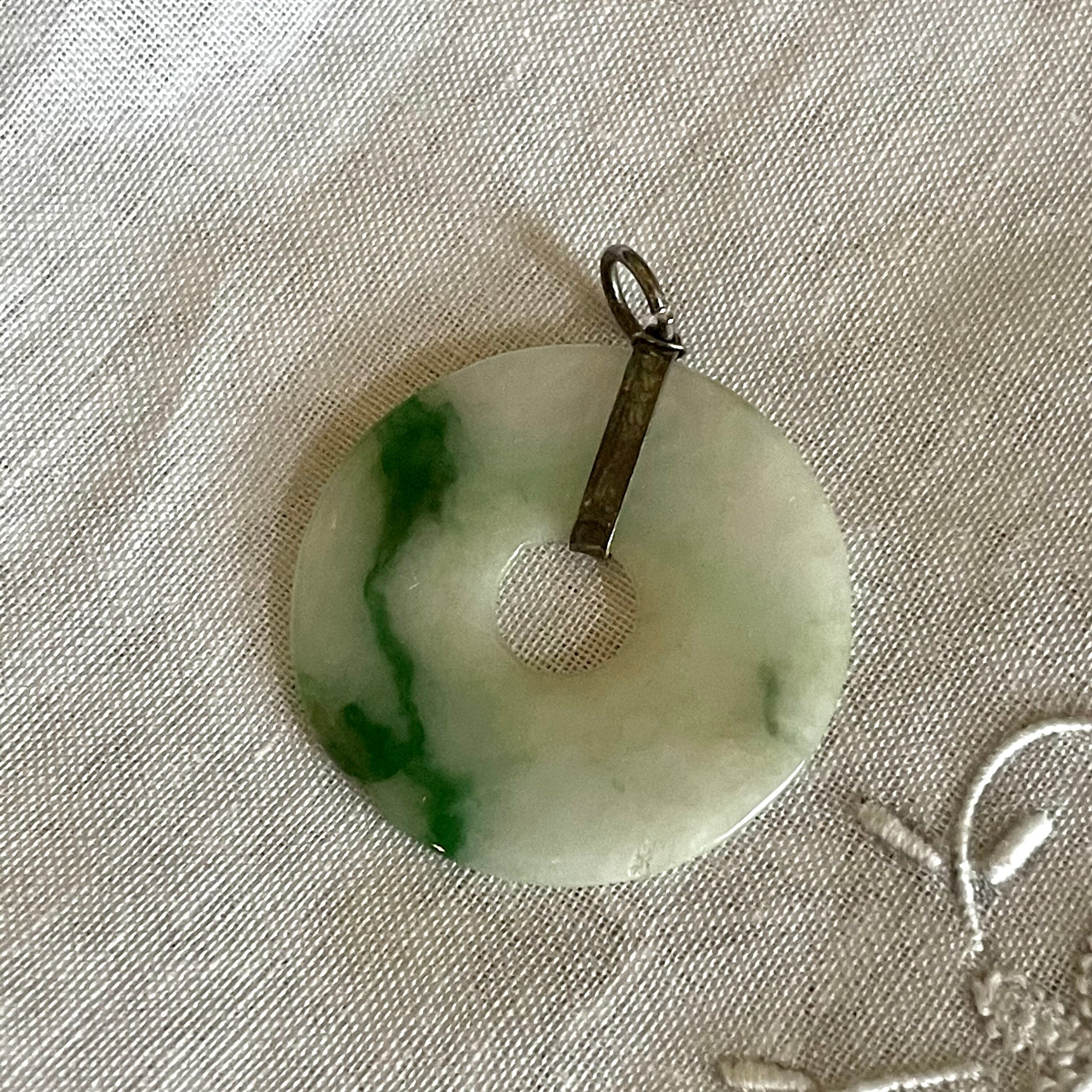 【アンティーク】深い緑色のアクセント 翡翠ペンダントトップ 丸形