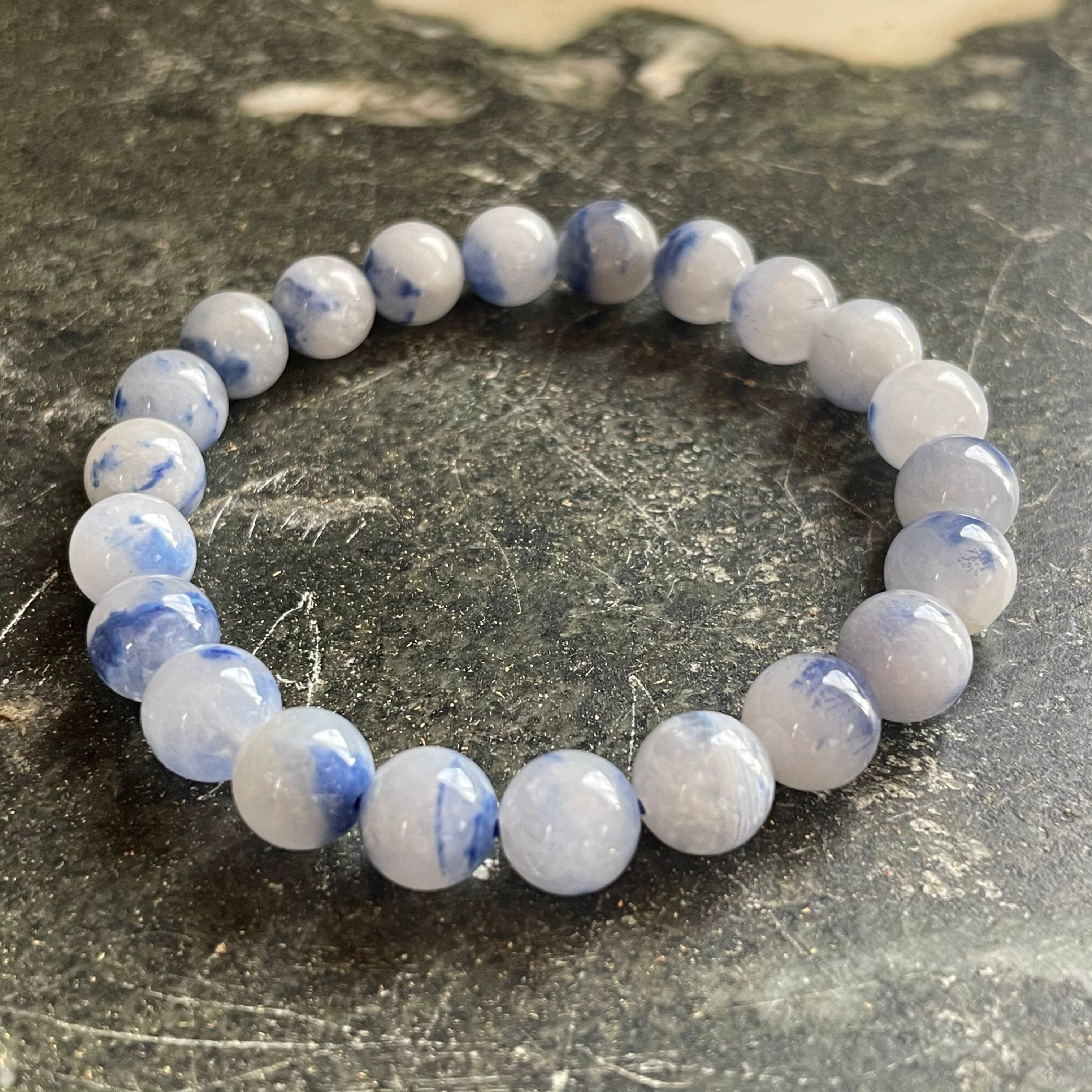 デュモルチェライトインクォーツのシリカタイプのブレスレット、とても珍しいお品です!