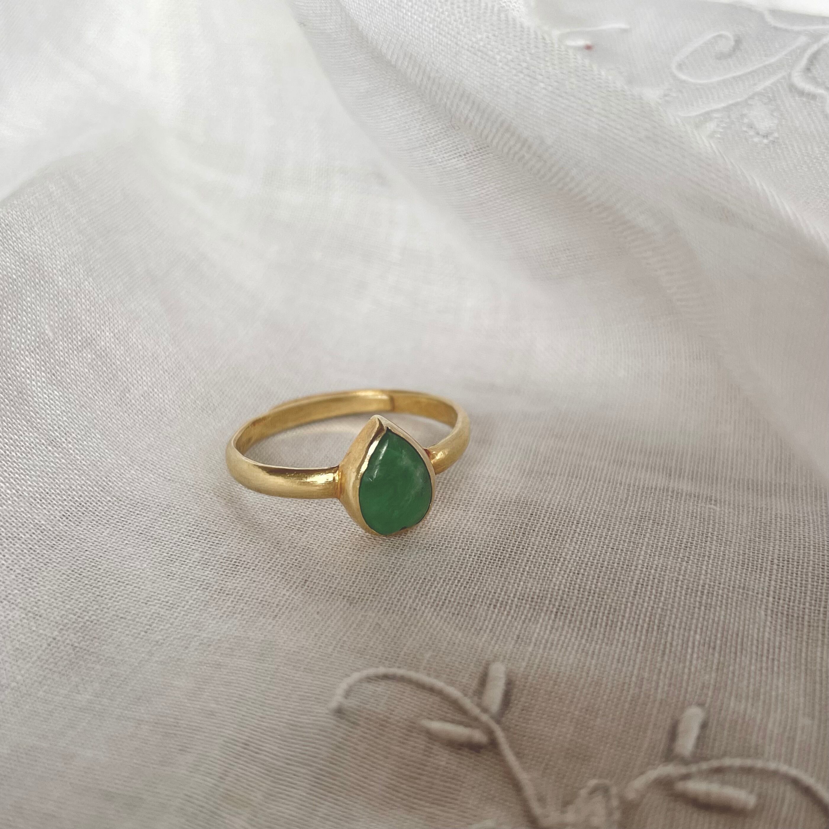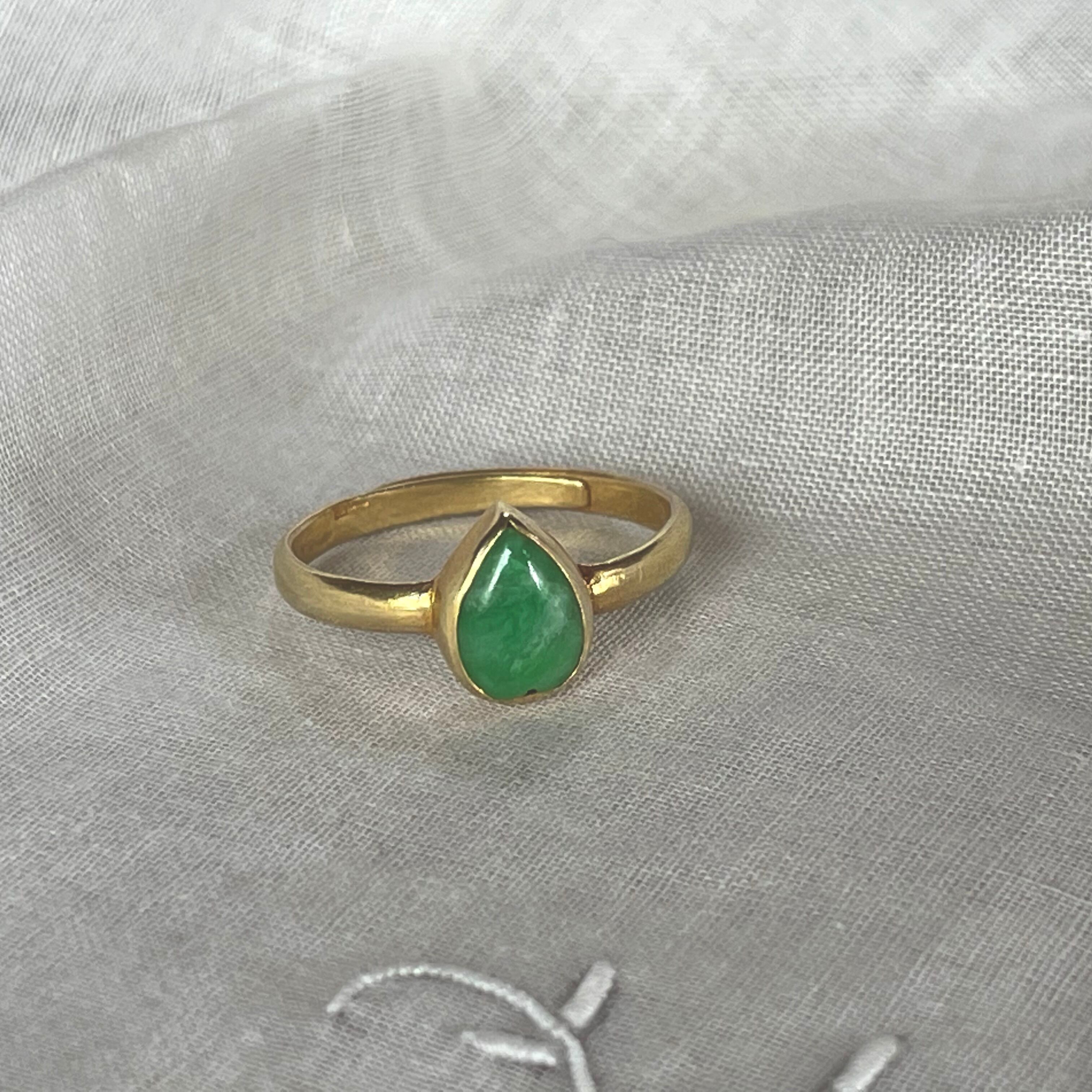 ぷっくりとした丸みを帯びたなみだ形の石が素敵な、可愛らしい雰囲気のリングです。