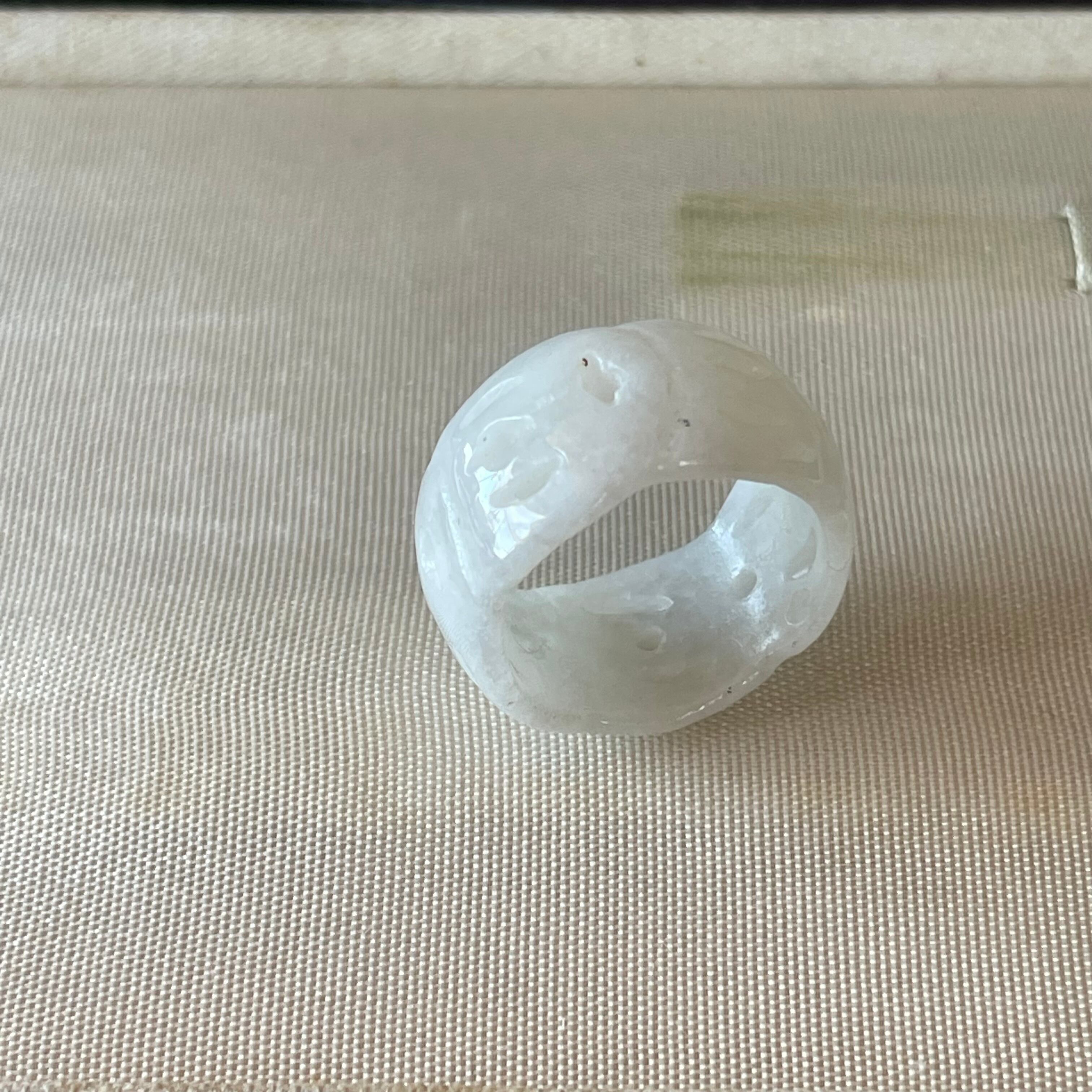 手に馴染むシンプルなデザインの翡翠リング、こちらは約30年程前のデットストック品です。ところどころアクセントとして石に彫刻がしてあります。