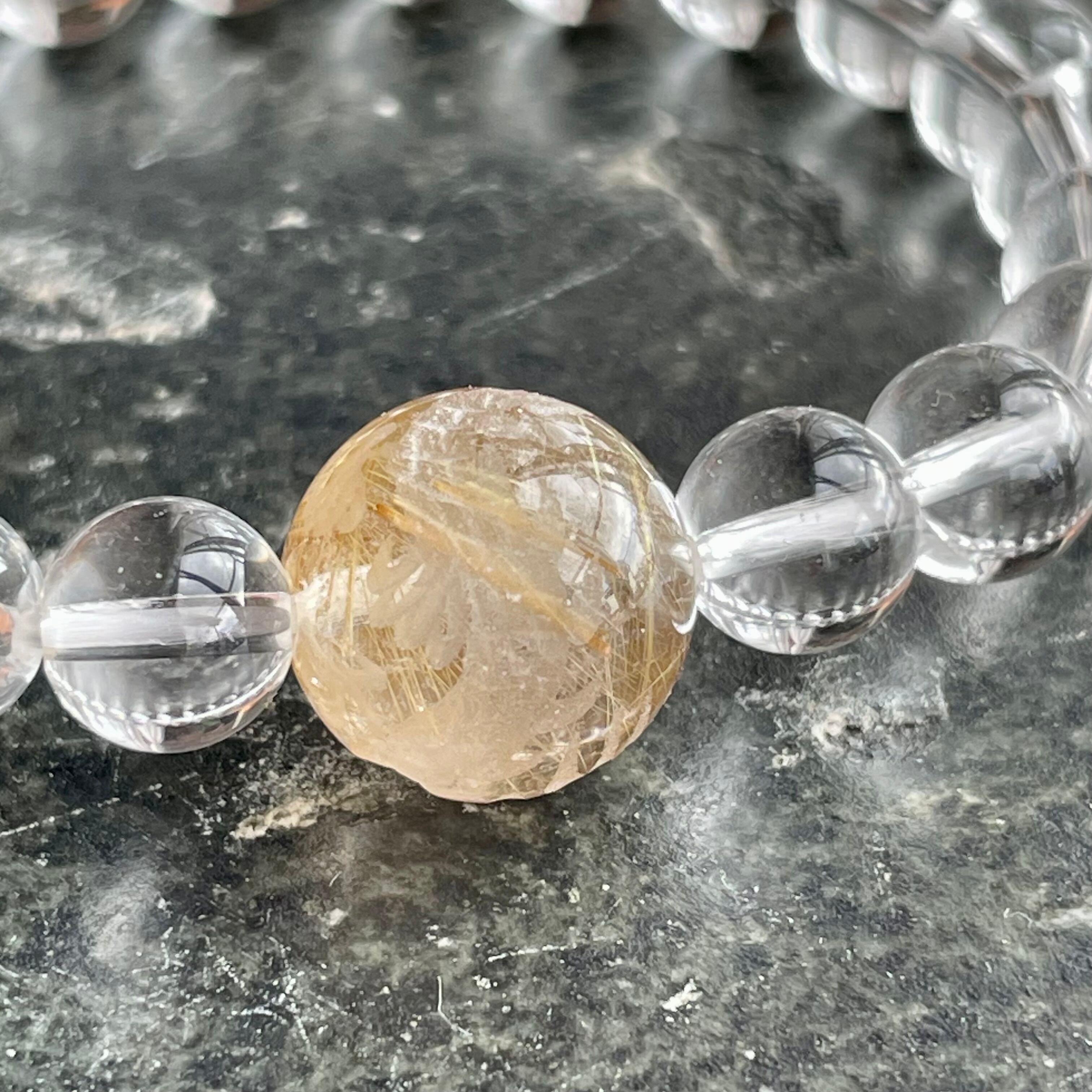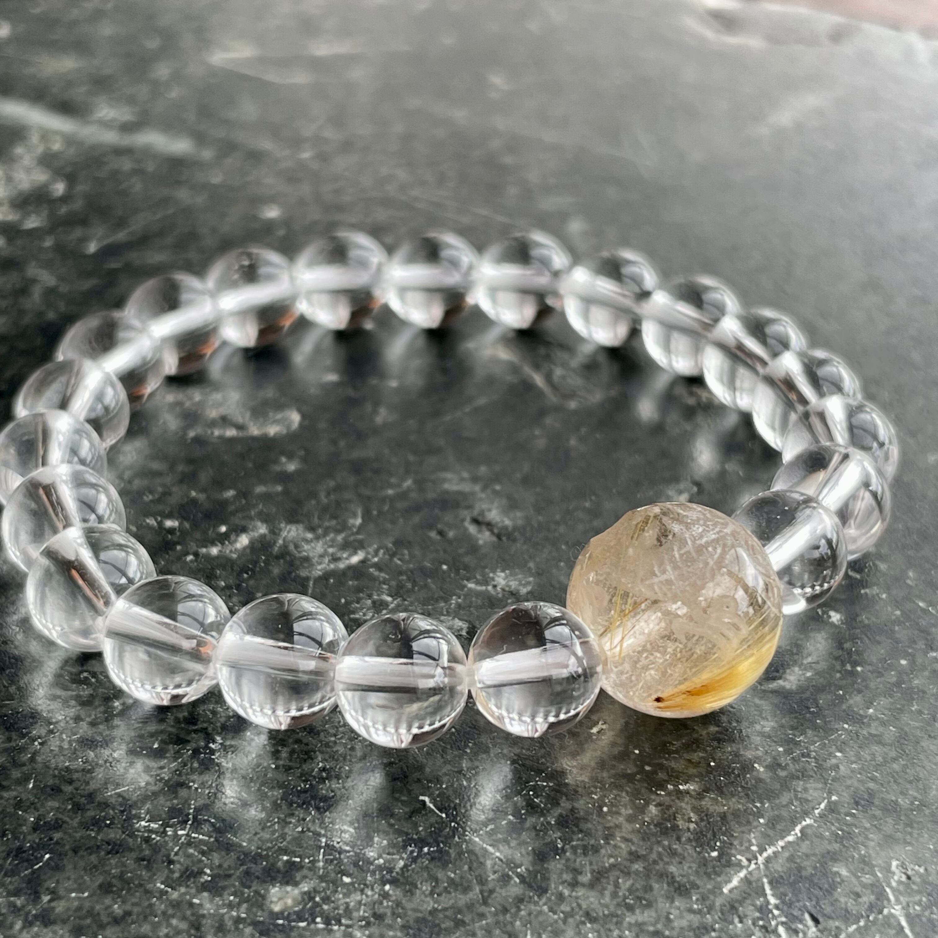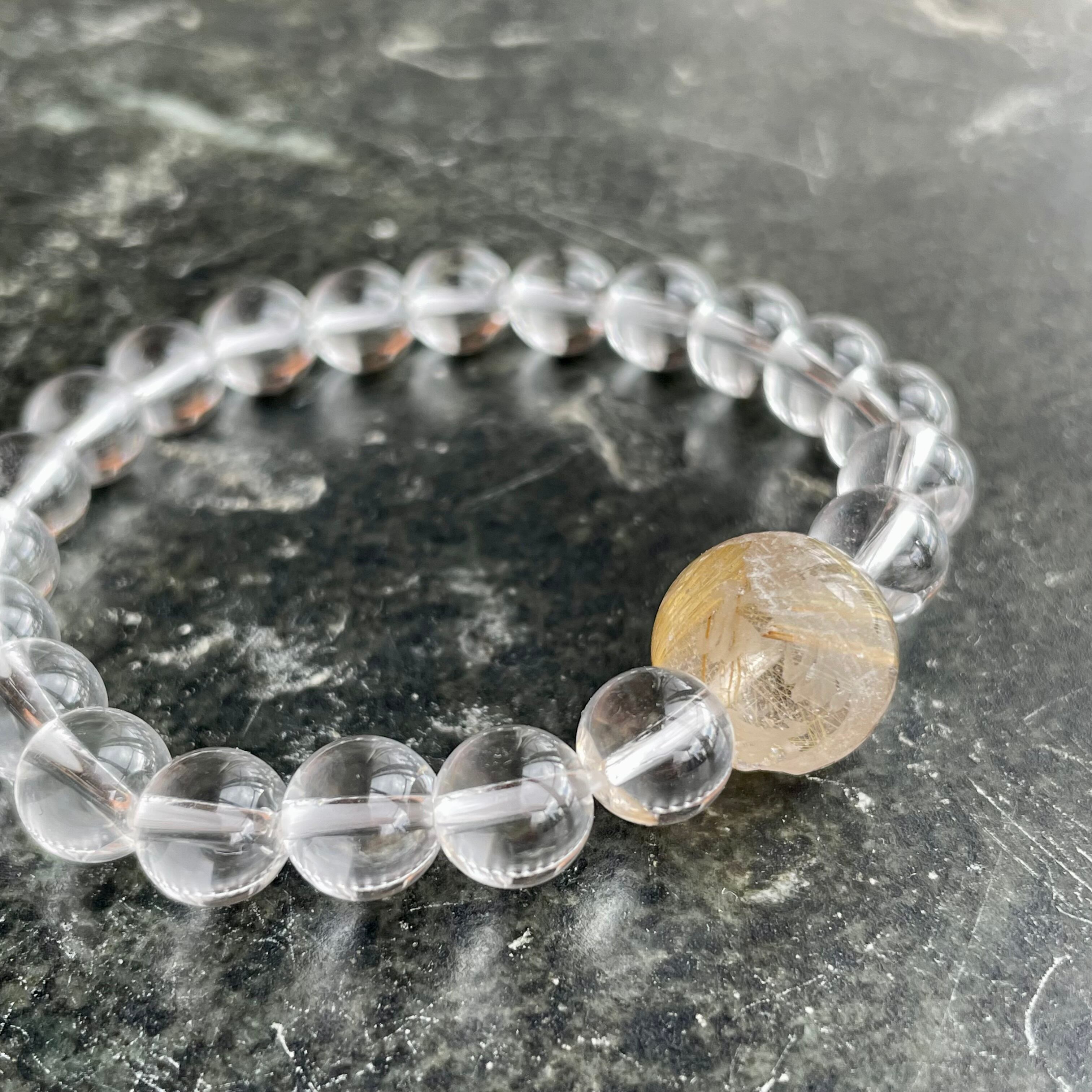 水晶の透明感、ルチルクォーツの金針もしっかりと入っていてとても美しいブレスレットです。