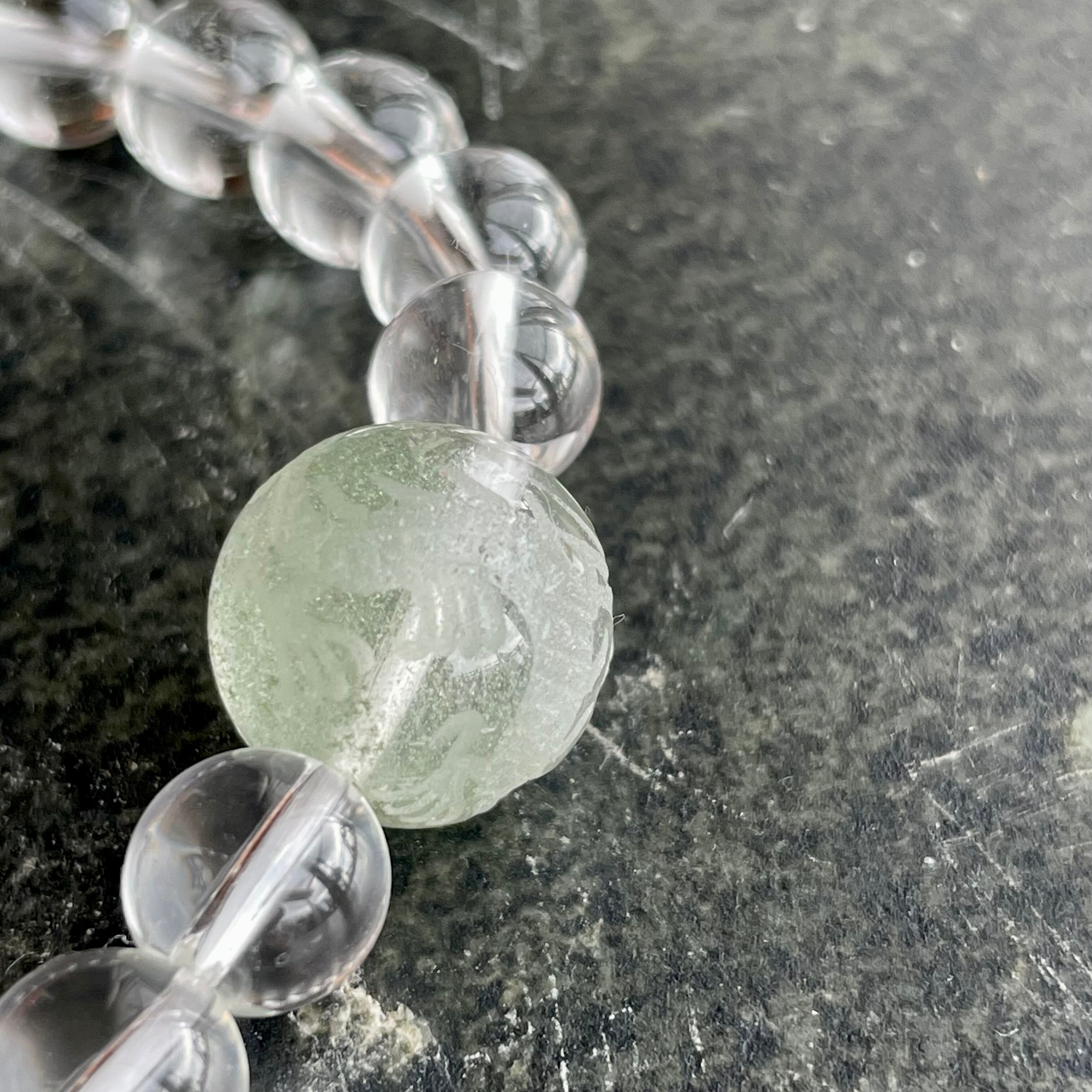 強力なパワーストーンの龍彫ガーデンクォーツ/水晶ブレスレットです。