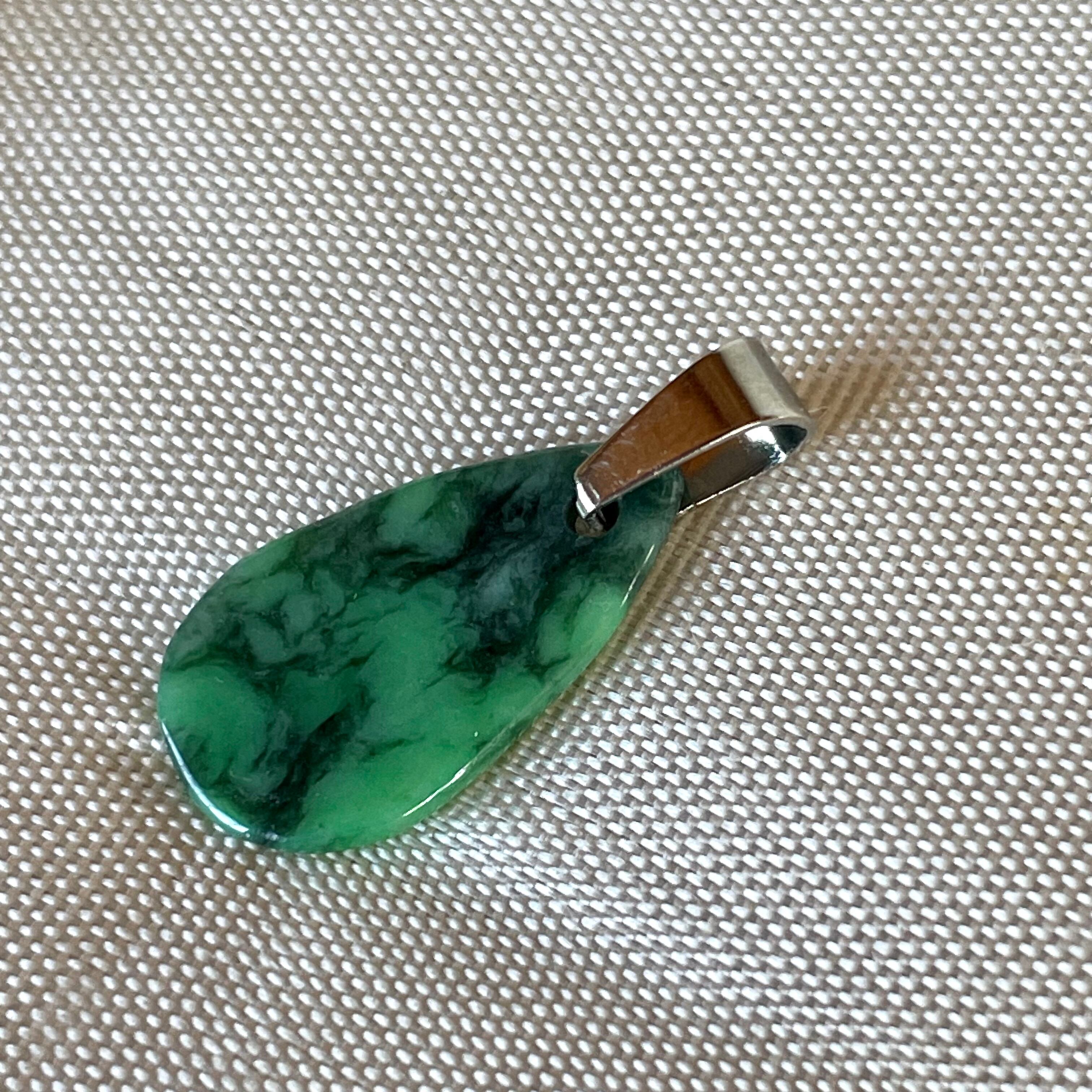 小さめサイズの可愛い翡翠ですが、色目は個性的!深い緑色が墨を落としたような模様になっています。