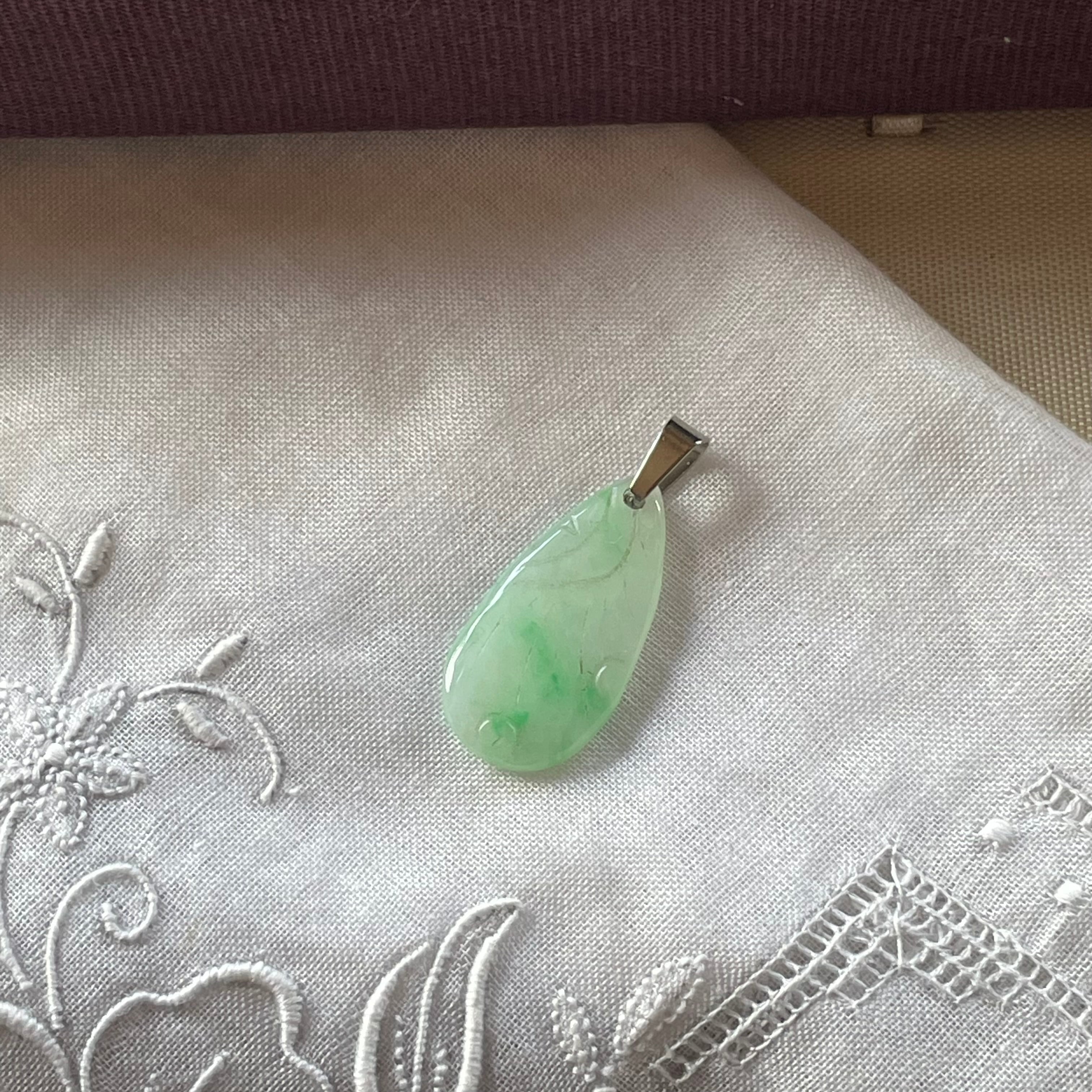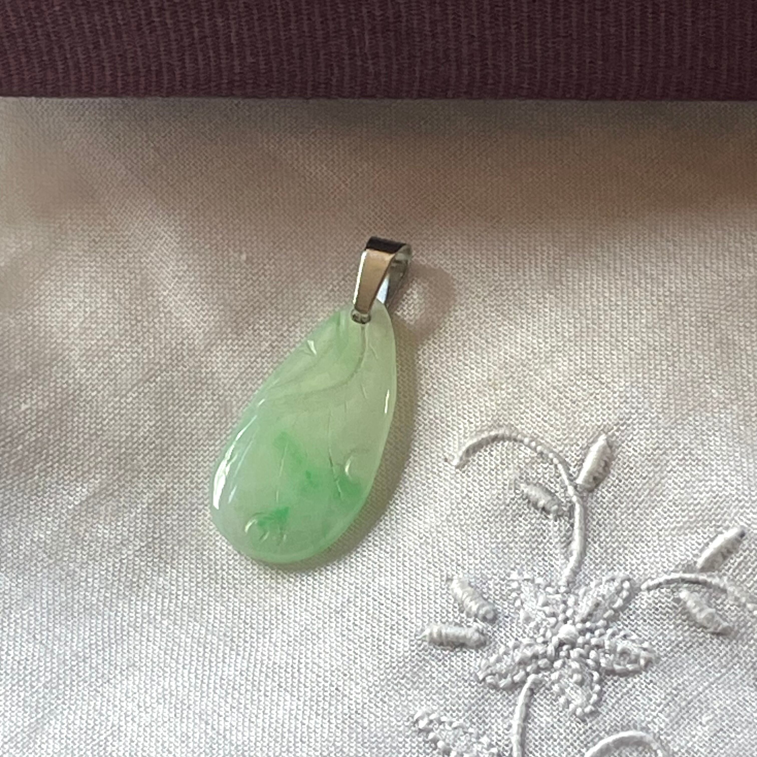 アンティーク翡翠 ペンダントトップ なみだ形彫り入り