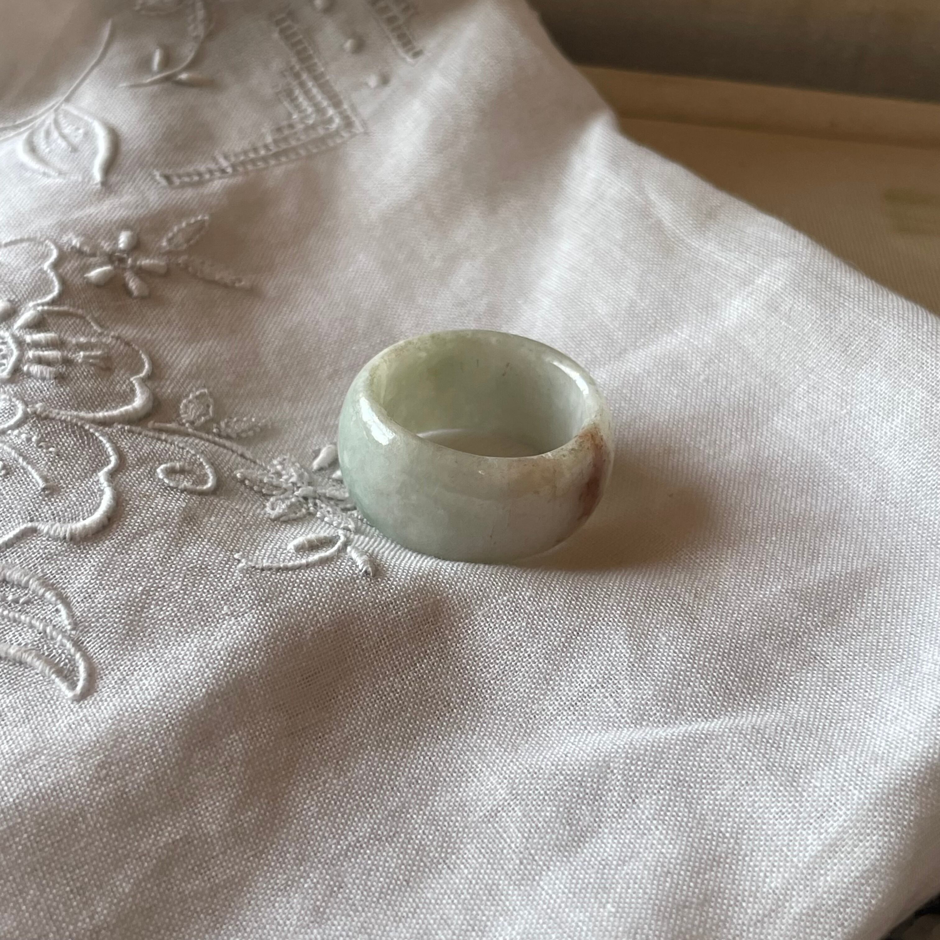 手に馴染むシンプルなくりぬきの翡翠リング、こちらは約30年程前のデットストック品です。
