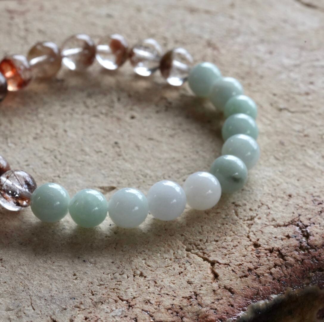 マルチカラーガーデンクォーツ/ビルマ翡翠 ブレスレット