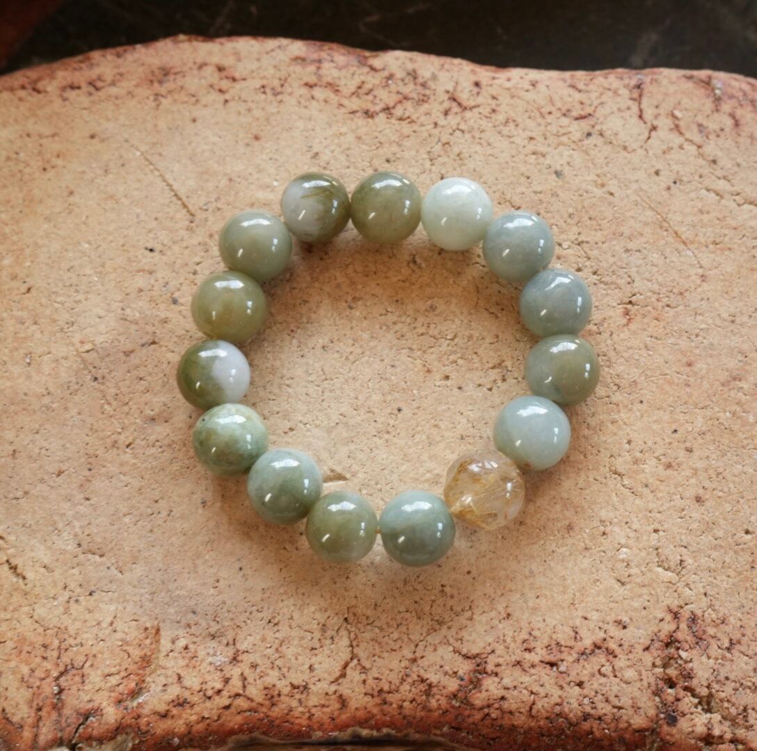 大粒 ビルマ翡翠/龍彫ルチルクォーツ ブレスレット