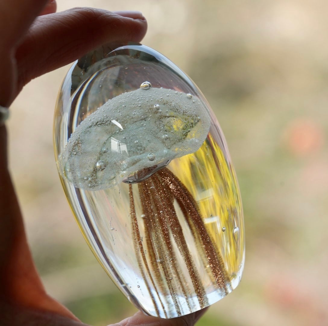 【再入荷】海をたゆたうクラゲ(ゴールド) ガラスのペーパーウェイト