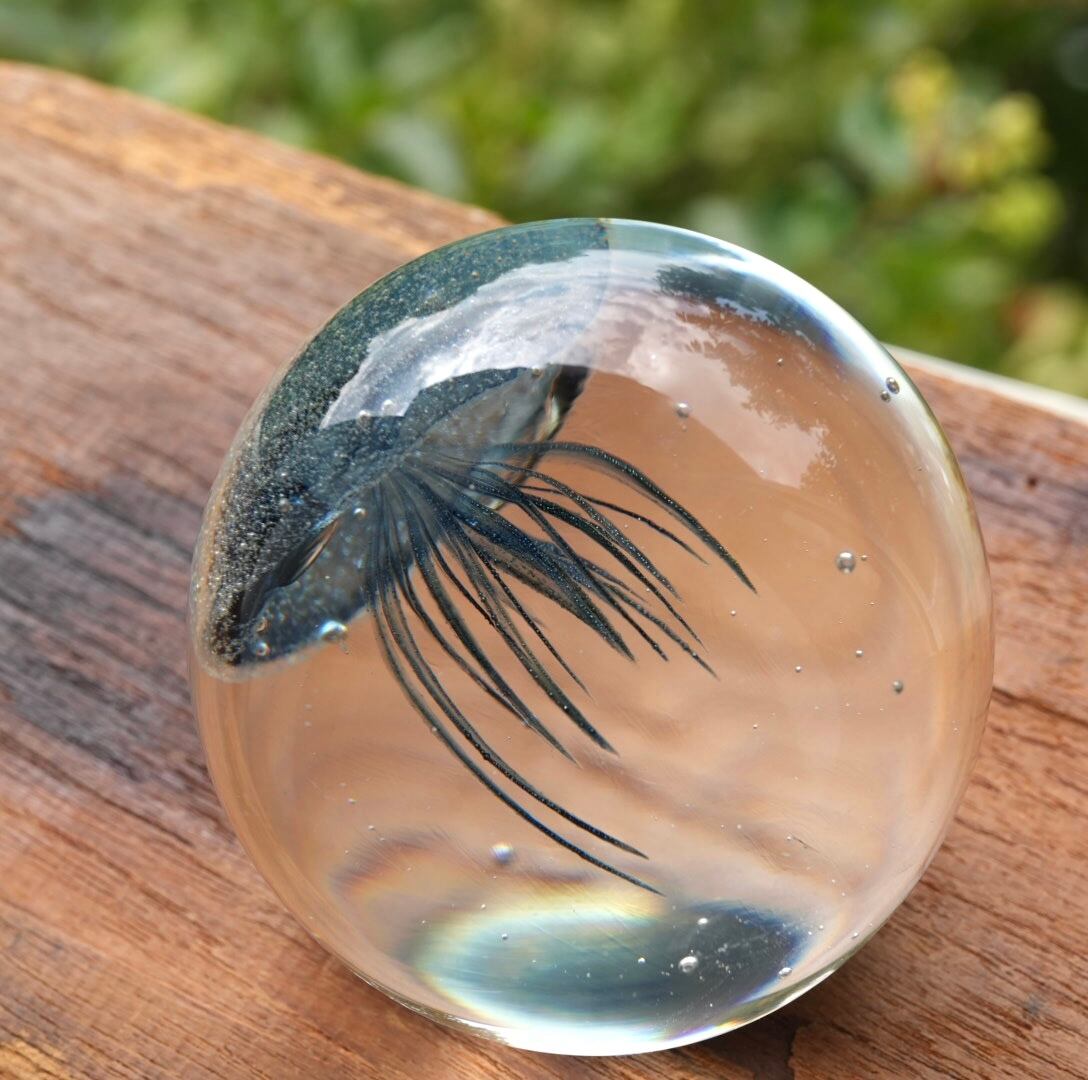 海をたゆたうクラゲ ガラスペーパーウェイト 青