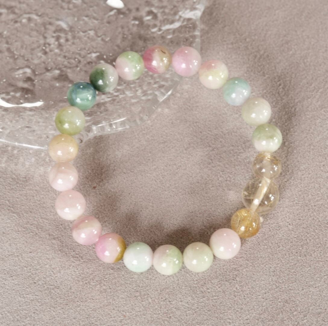 マカロントルマリン/ゴールドルチルクォーツ ブレスレット