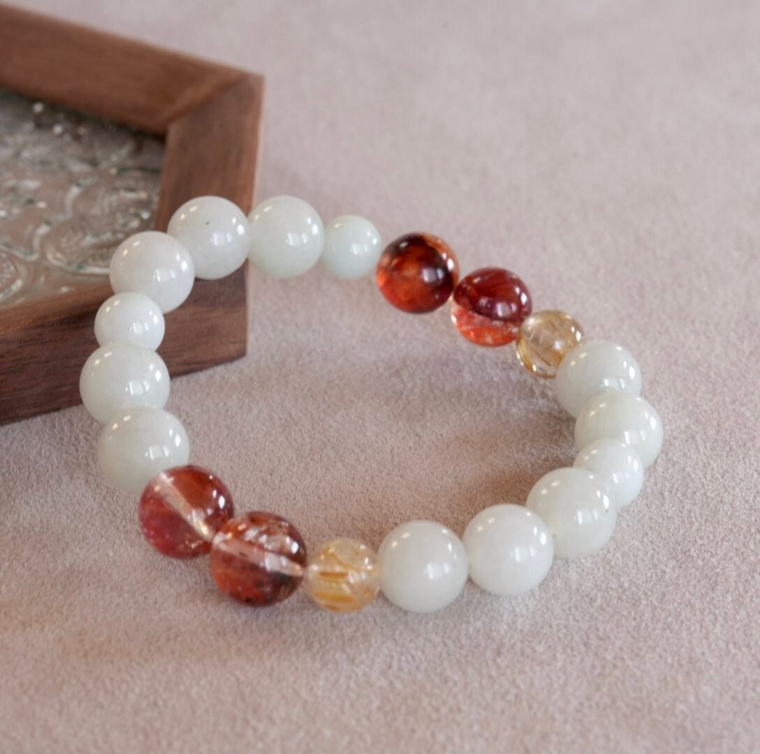 ビルマ翡翠/レッドヘマタイトクォーツ ブレスレット