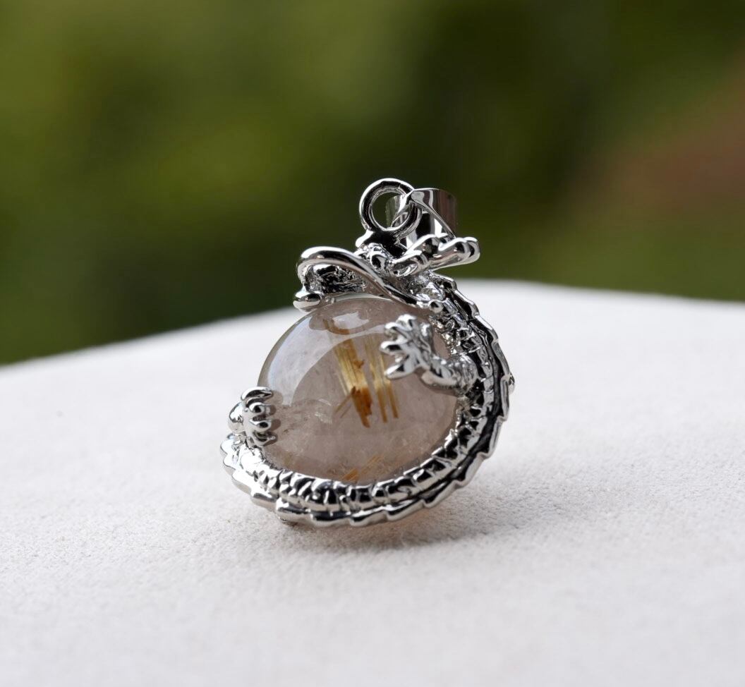 着けられます。龍とタイチンルチルの石は固定ではないため、その日の気分でくるくると回して簡単に変えることができます。