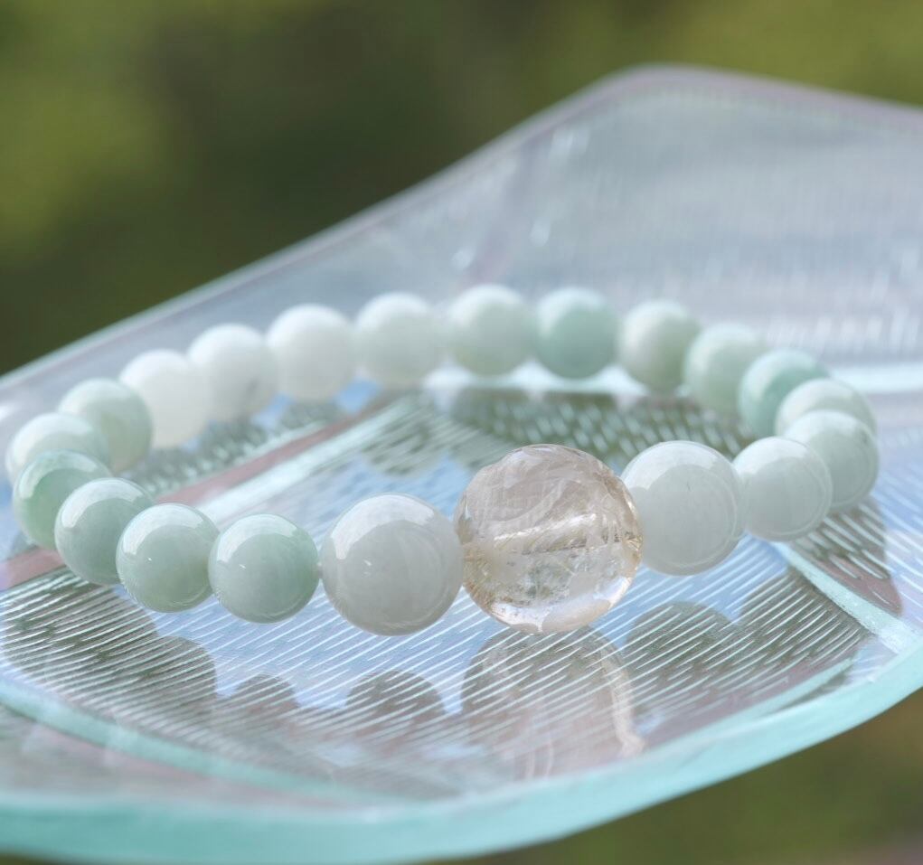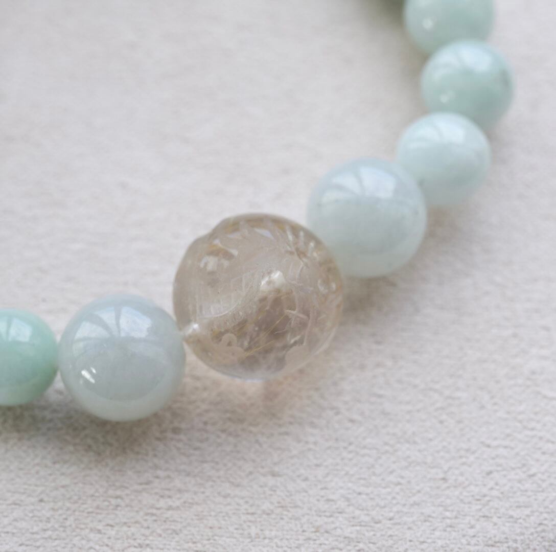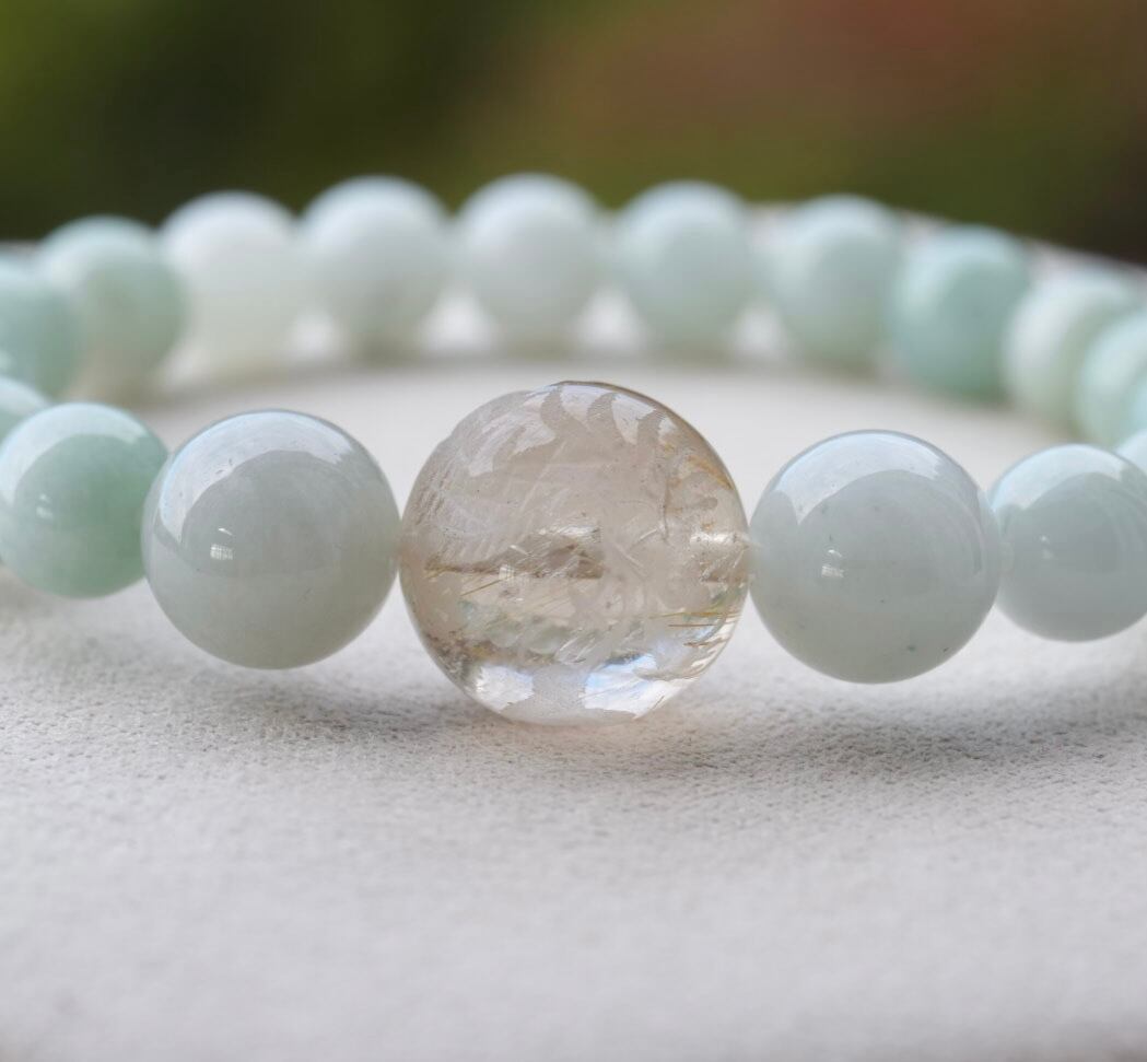 ビルマ翡翠/龍彫ルチルクォーツ ブレスレット