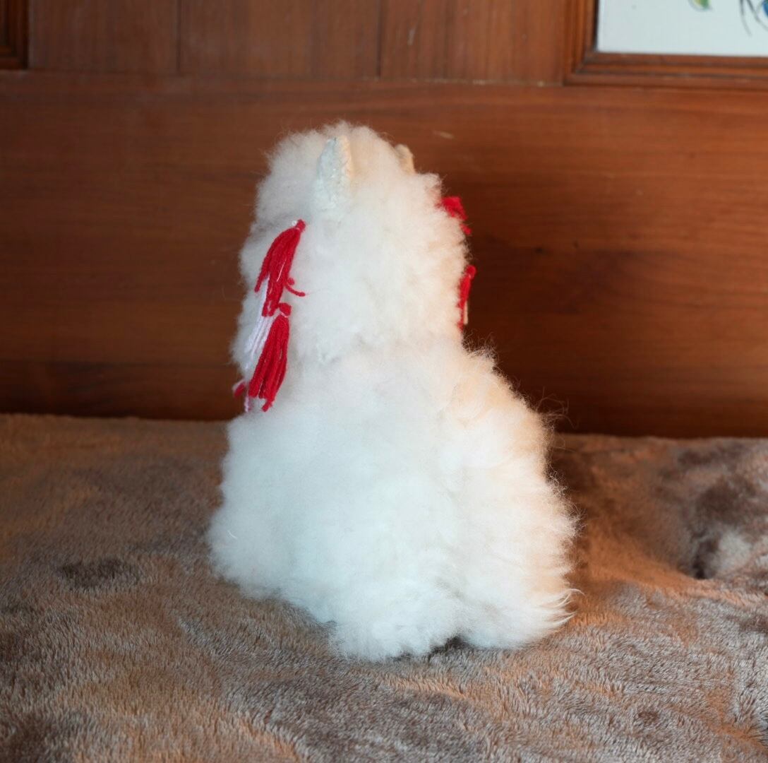 再入荷しました!ペルーからのふわっふわのアルパカのぬいぐるみ。本物のアルパカの毛を100%使っている癒しのアルパカです。