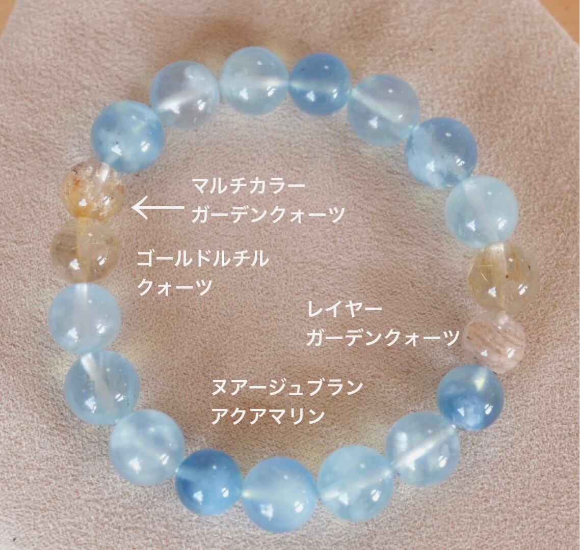 ヌアージュブランアクアマリン/マルチカラーガーデンクォーツ ブレスレット