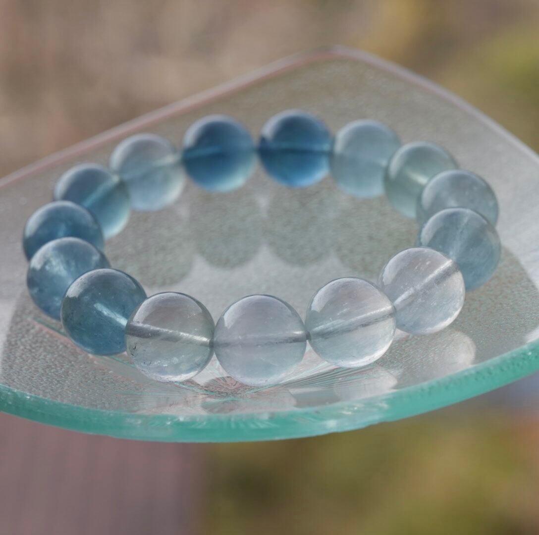 うさぎの毛のようなふわふわとした内包物が入っているブルーラビットヘアーフローライト。