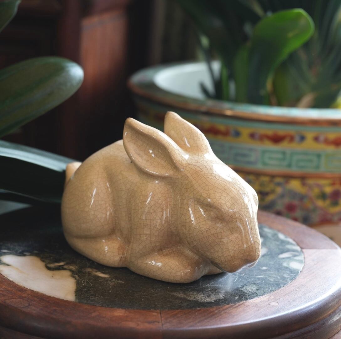 色は落ち着いたベージュ。大人っぽいシノワズリーなインテリアにも馴染みやすいうさぎさんです。